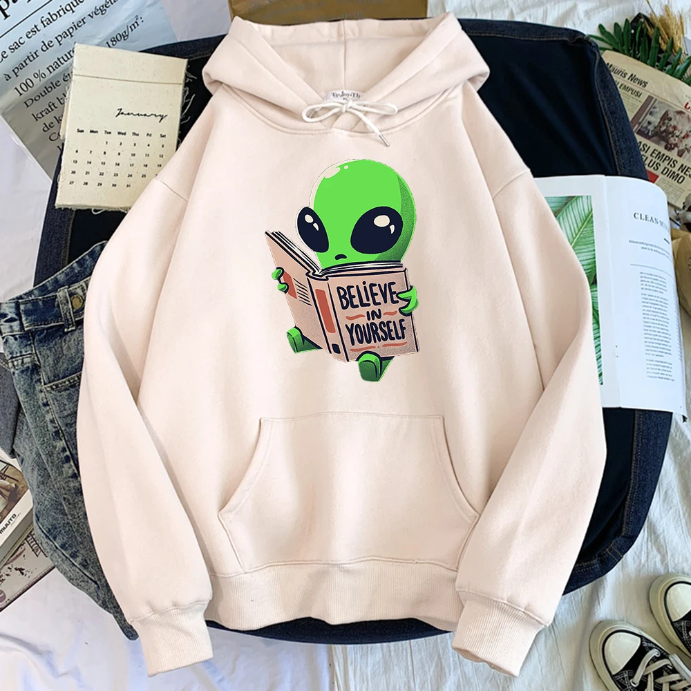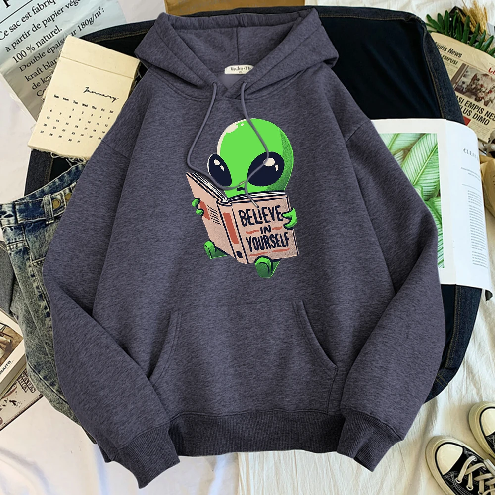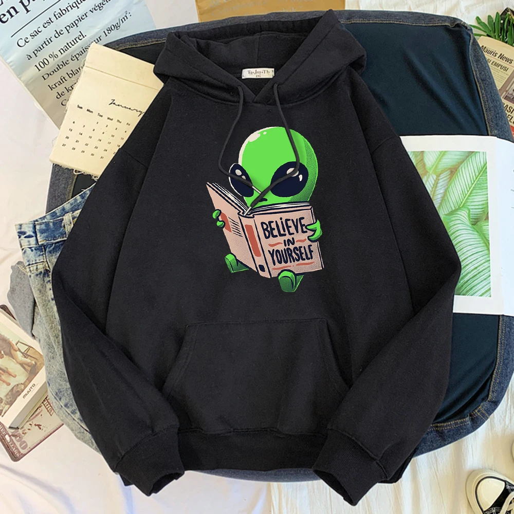 Зеленый Alien Prints Believe In Yourself уличная одежда для мужчин с круглым вырезом Осенняя толстовка с рисунком флисовые толстовки Harajuku Crewneck одежда