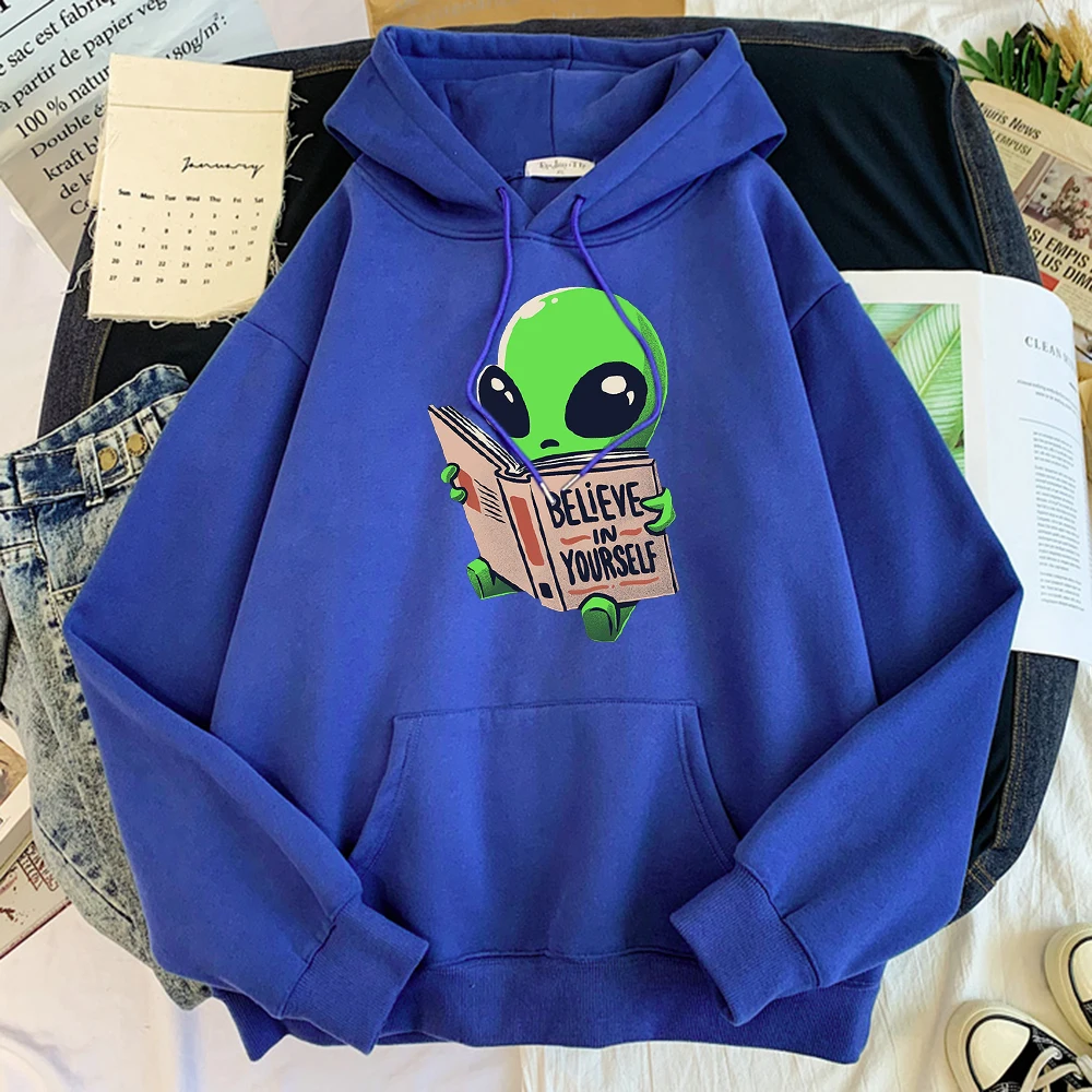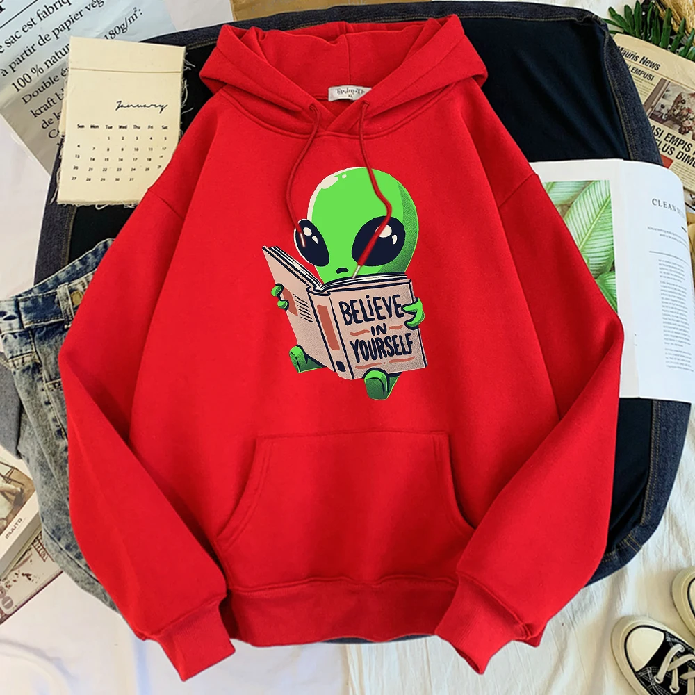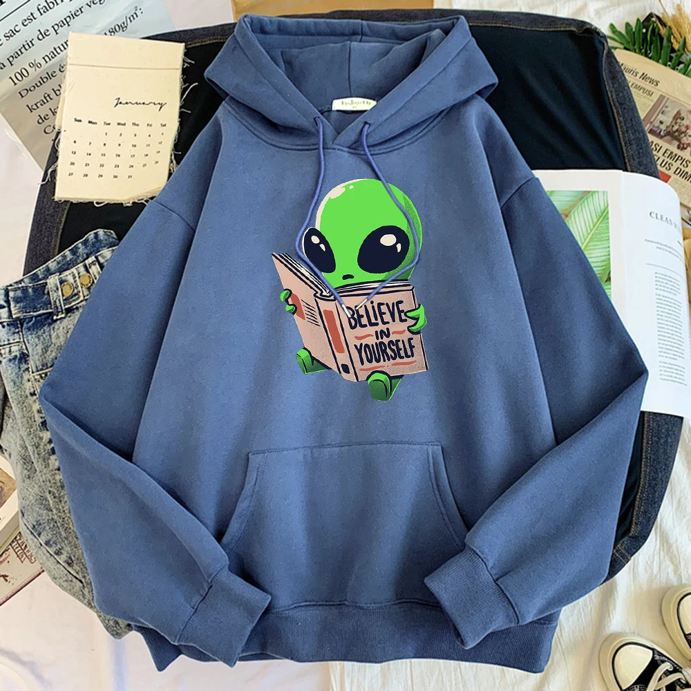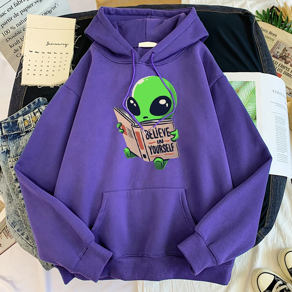 Зеленый Alien Prints Believe In Yourself уличная одежда для мужчин с круглым вырезом Осенняя толстовка с рисунком флисовые толстовки Harajuku Crewneck одежда