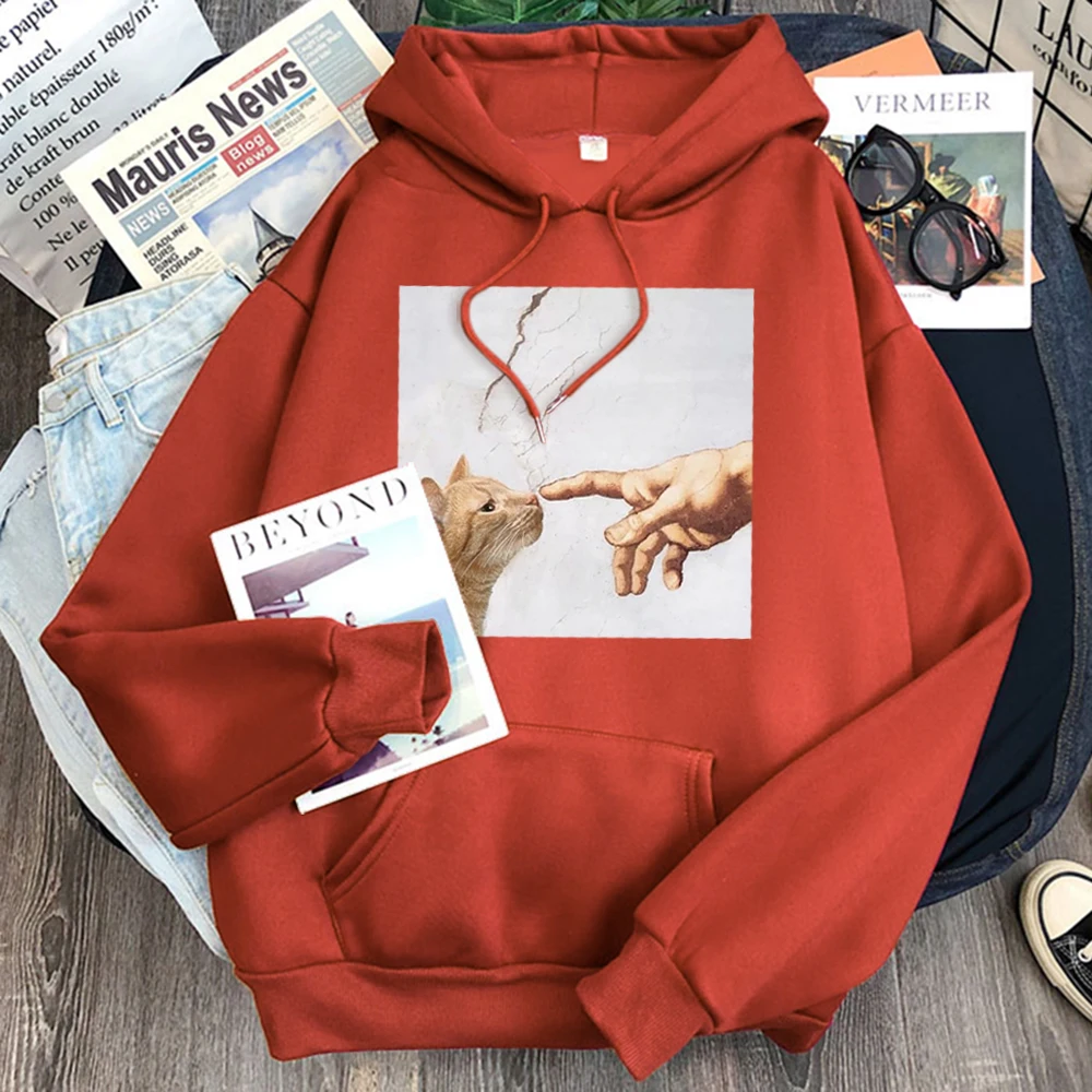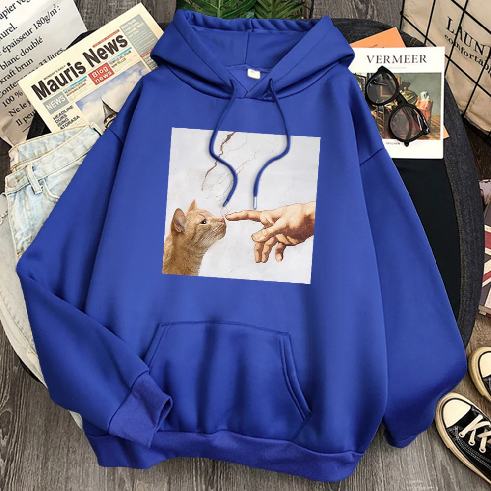 Толстовки с капюшоном и принтом милых кошек, повседневные Свободные флисовые толстовки с длинными рукавами и карманами, винтажная Мужская Толстовка Harajuku