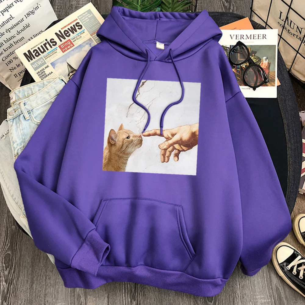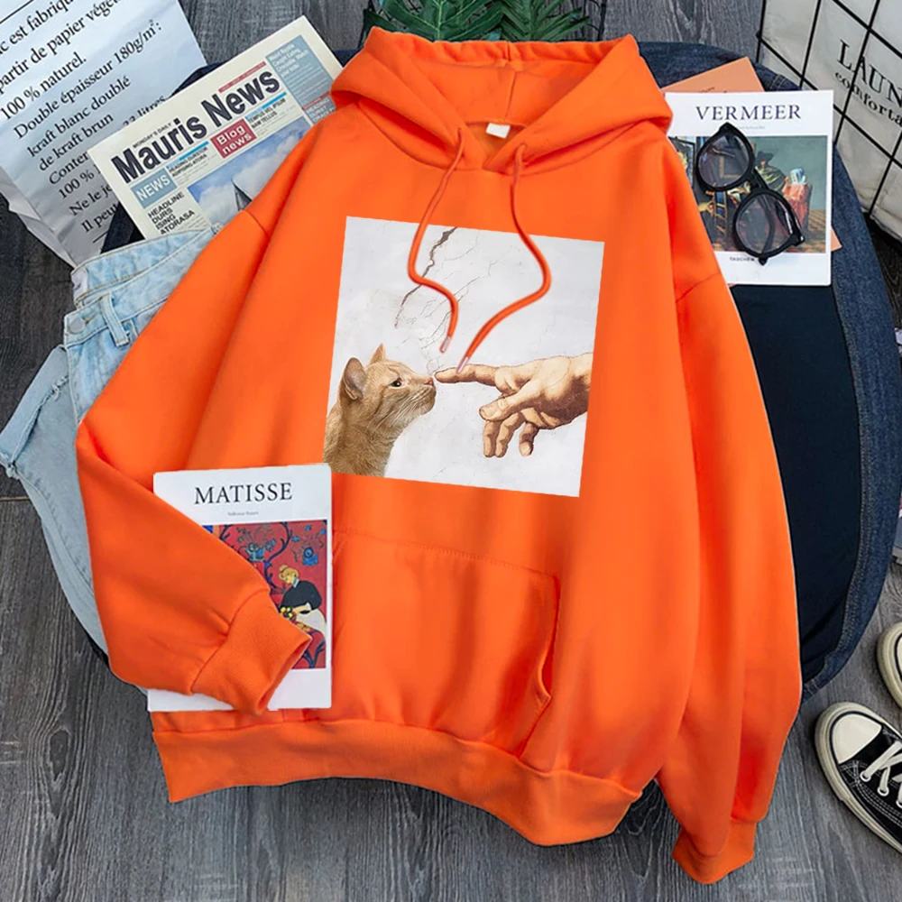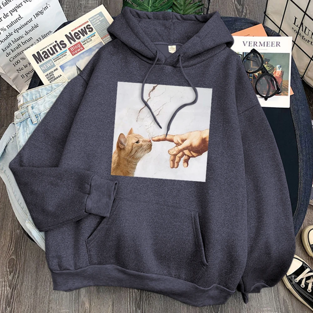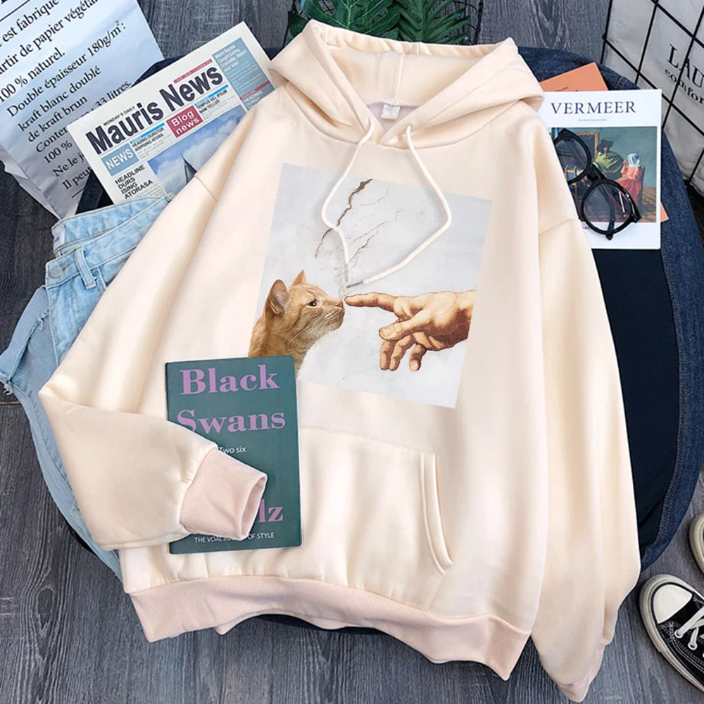 Женские толстовки с рисунком черного кота, модная уличная уличная о...