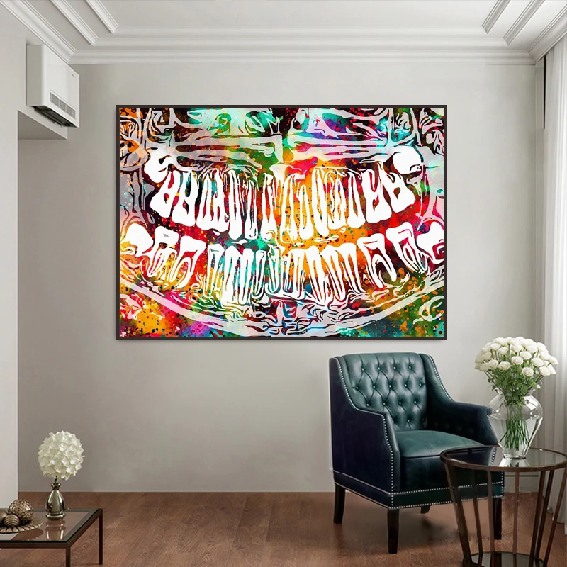 Красочный зуб смех Стоматологическое искусство дантист холст живопись современное искусство Настенная картина для медицинского образования офис Домашний декор