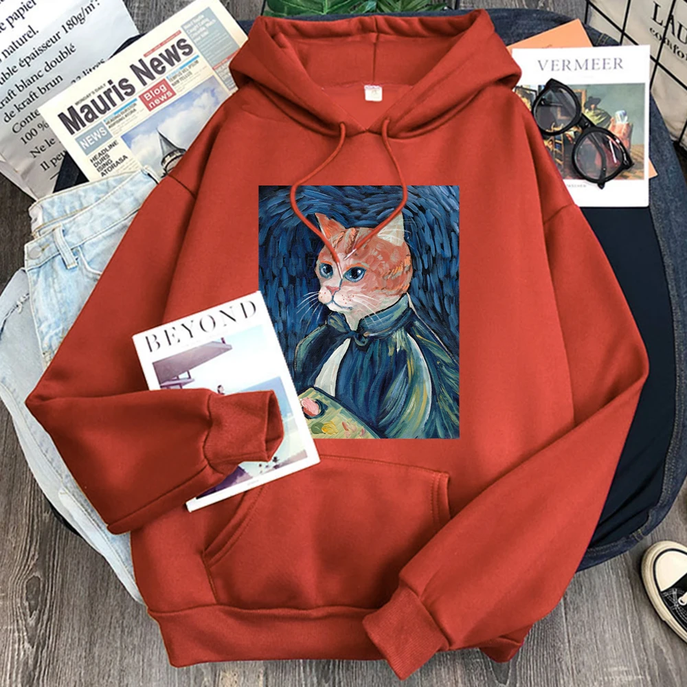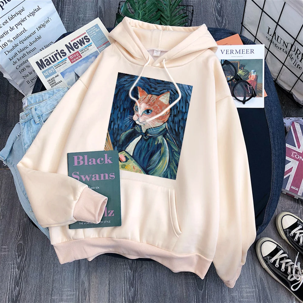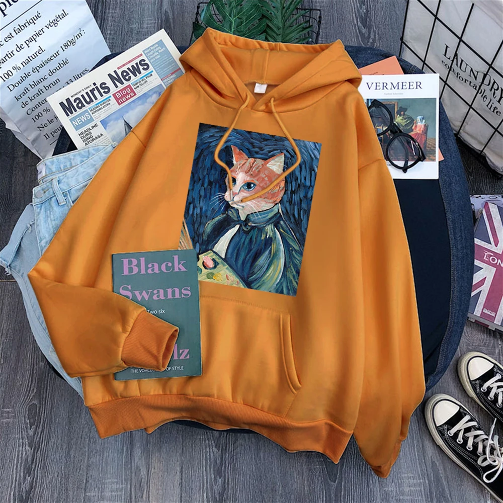 Толстовка Женская с милым котом и красивым принтом, уличный Повседн...