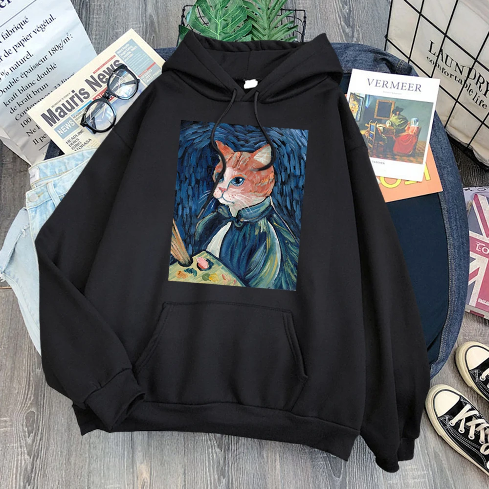 Женские толстовки с рисунком черного кота, модная уличная уличная о...