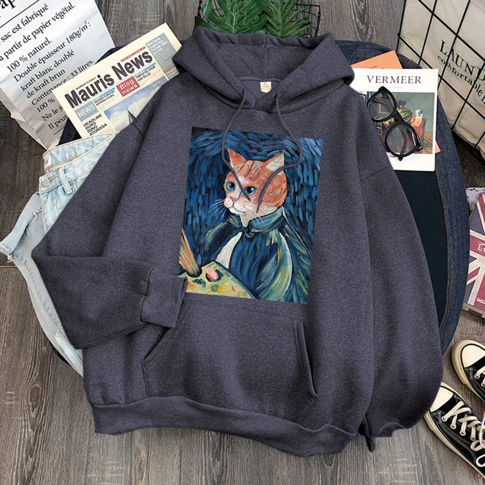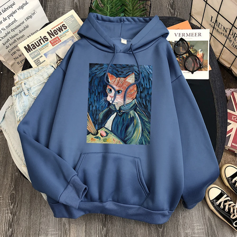 Толстовка с капюшоном Ван Гога и Моны Лизы в стиле звездной ночи, ж...