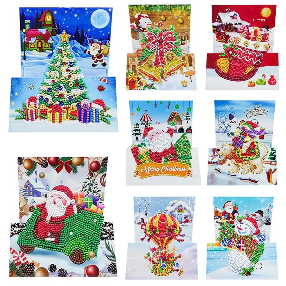 8 шт. 5D DIY Алмазная картина поздравительная открытка Санта-Клаус ...