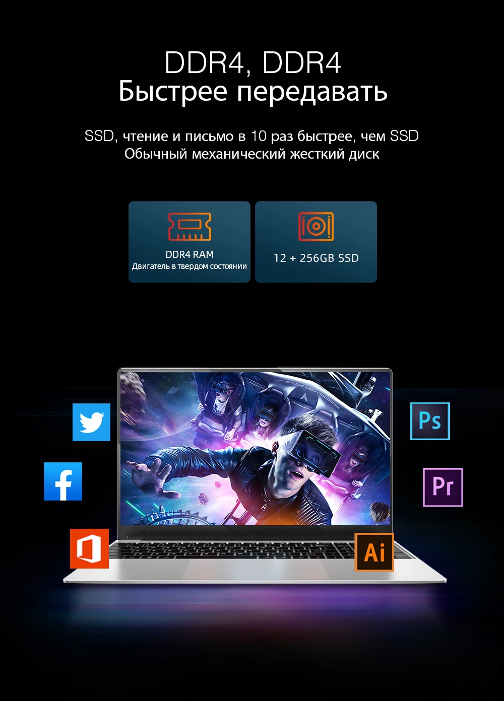Ноут пришёл за 8 дней сдеком. Продавец написал что черные закончились и попросил поменять цвет. Я поменял на серебристый. Когда пришел на коробке серебристый а сам ноут черный. Память 475 Гб(должно быть 256). Оперативы 12 Гб. Всё вроде как обещали.