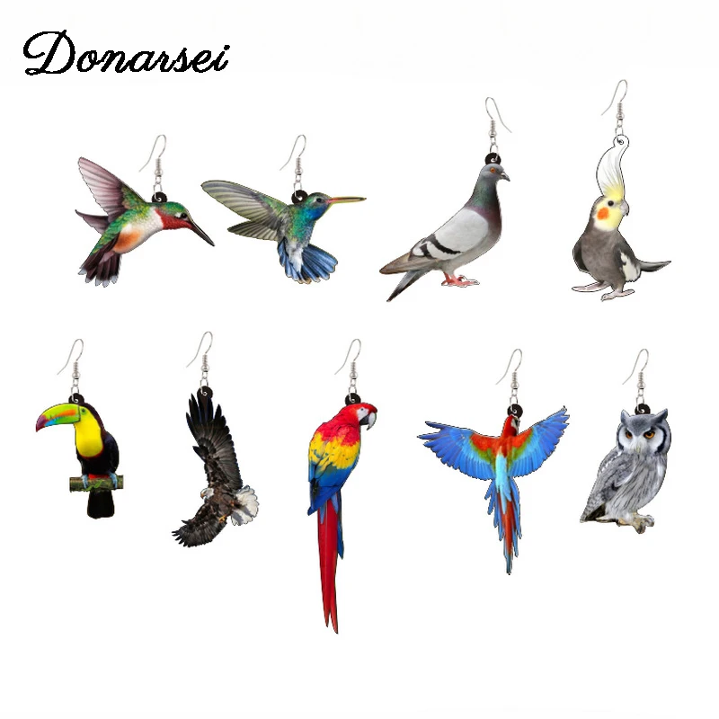 Женские акриловые серьги Donarsei, забавные серьги-капельки в виде Колибри, голубей, орла, совы, попугая, серьги в виде птиц, ювелирные изделия новинки