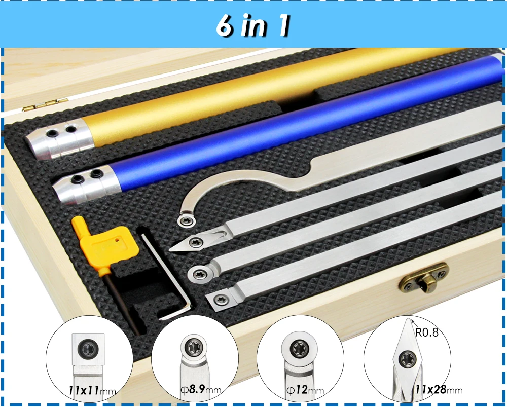 Набор инструментов для токарного станка, комплект из 6 в 1 резцов с твердосплавной пластиной, для токарного станка, из нержавеющей стали