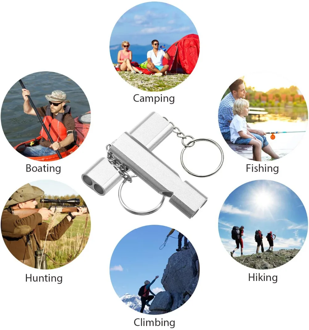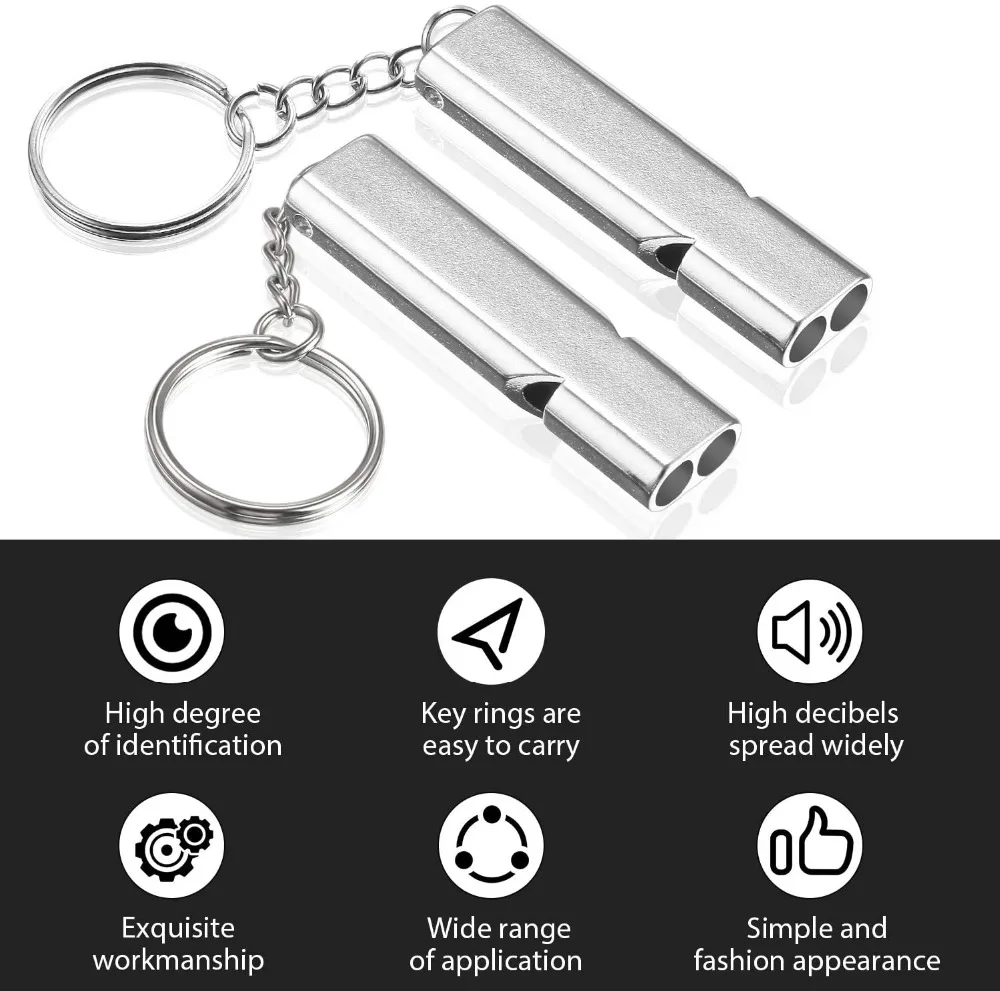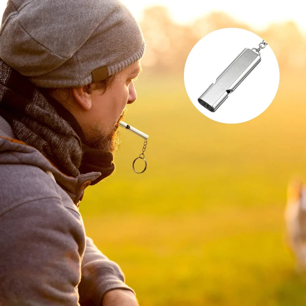 2PcsEmergency свистки безопасности свистки для выживания с высоким шагом двойные трубки металлический свисток для наружного кемпинга туризма катания на лодках охоты