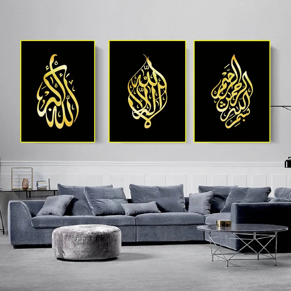 Художественная картина маслом, мусульманская, Исламская, холст с каллиграфией, плакаты и принты, украшение для дома, гостиной, настенная живопись
