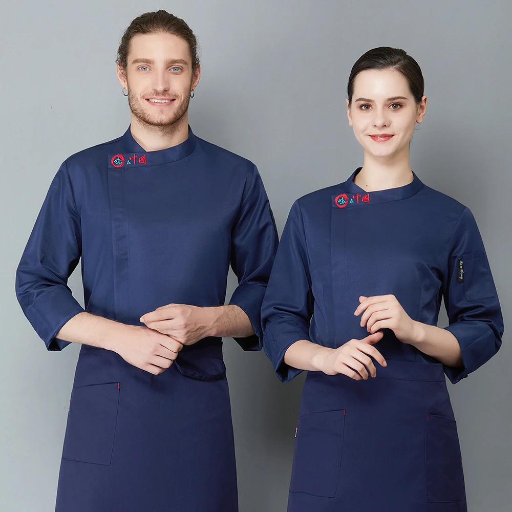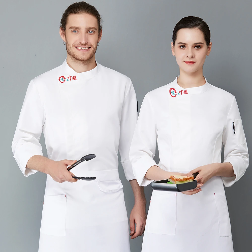 Унисекс однотонная форма шеф-повара с длинными рукавами для ресторана столовой отеля пальто для готовки фартук шляпа кафе пекарня суши официант рабочие Топы