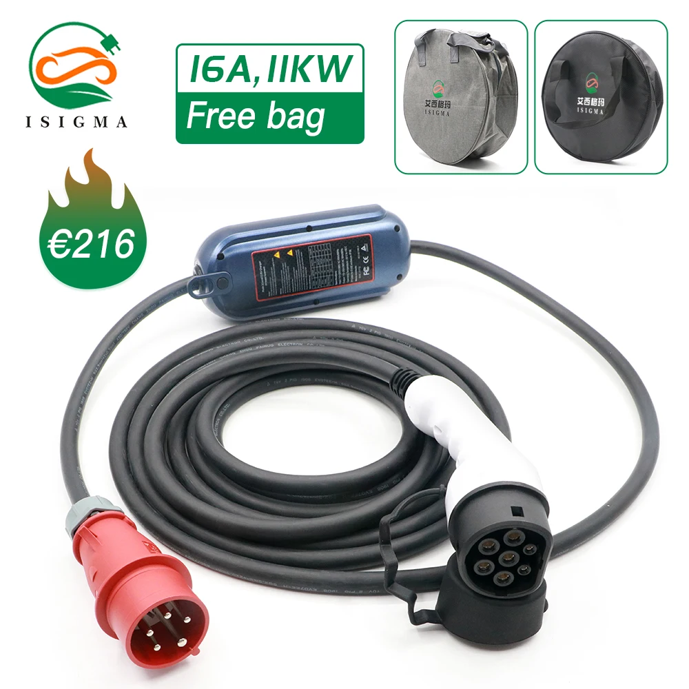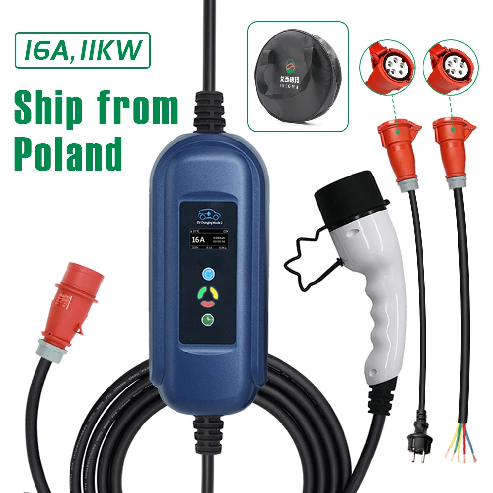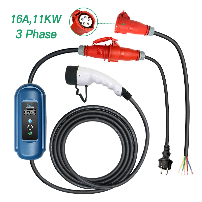 Зарядное устройство для электромобилей 16 А, 3 фазы, 11 кВт, тип 2, устройство для зарядки электромобиля 2, используется для настенной зарядки с или без адаптера