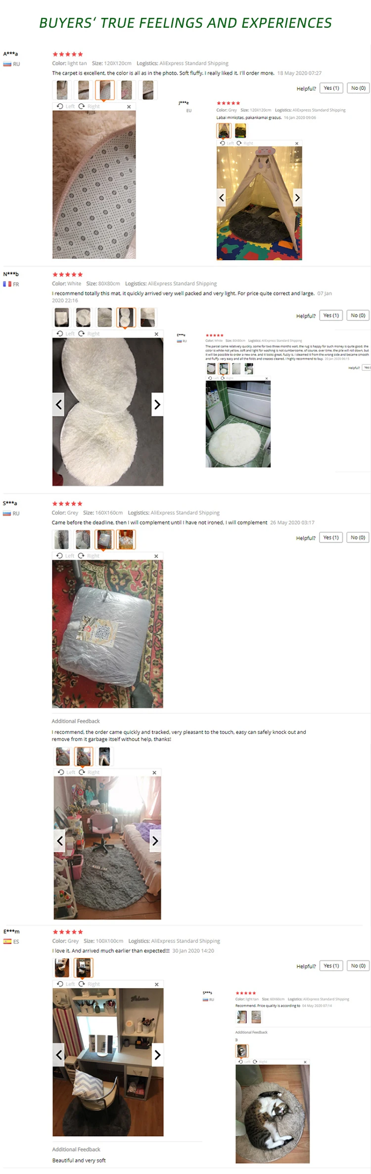 В: есть ли у вас реальные фотографии? Могу ли я посмотреть? О: Да. У нас есть. Я отправлю вам Настоящее фото позже. В: это противоскользящее изделие? О: Да, нижняя часть ковра-Нескользящая пластиковая подошва. В: если вам это не нравится, как вернуть товар? О: мы вернем покупателям деньги, если покупатели возвращают товары в течение 15 дней с момента получения покупателями товаров по любой причине. Тем не менее, покупатели должны нести стоимость обратной доставки и убедиться, что возвращенные товары находятся в их первоначальном состоянии. В: как чистить ковер? О: небольшие ковры можно стирать в стиральной машине или стирать вручную. Большие ковры рекомендуется чистить с помощью пылесоса. Вопрос: Что делать, если вы хотите большой ковер? О: пожалуйста, свяжитесь с нашей службой поддержки клиентов напрямую. В: какая логистика используется для доставки? О: товары отправляются стандартной доставкой AliExpress, авиапочтой Китая, Премиум доставкой AliExpress, ePacket, доставляются в большинство стран в течение 15-35 рабочих дней. Время доставки зависит от пункта назначения и других факторов, это может занять до 60 рабочих дней. Если вы хотите получить товар быстрее, пожалуйста, свяжитесь с нами, чтобы оплатить дополнительные перевозки, мы можем предложить вам следующие более быстрые и дешевые способы доставки: UPS , DHL , Fedex , TNT , DEPX , EMS. С помощью этих способов вы можете получить товар в течение 5-7 рабочих дней.