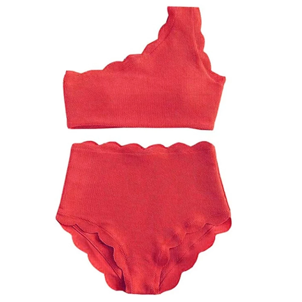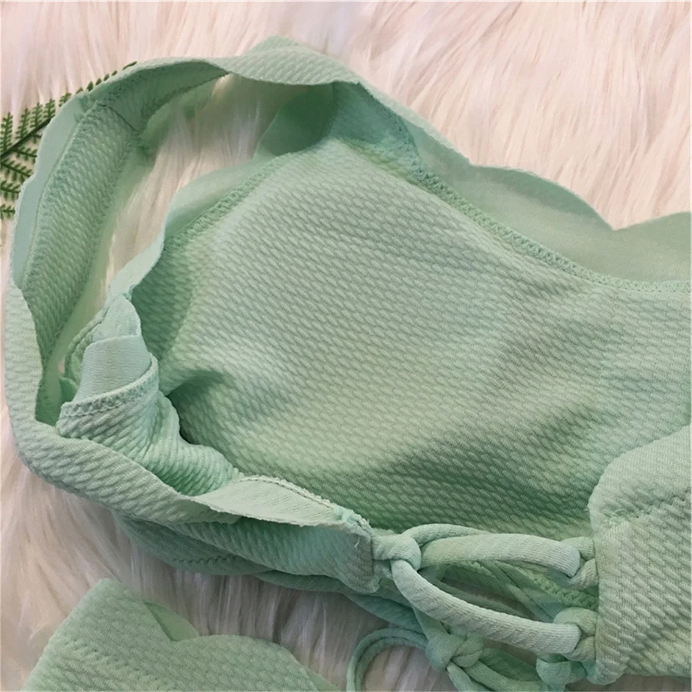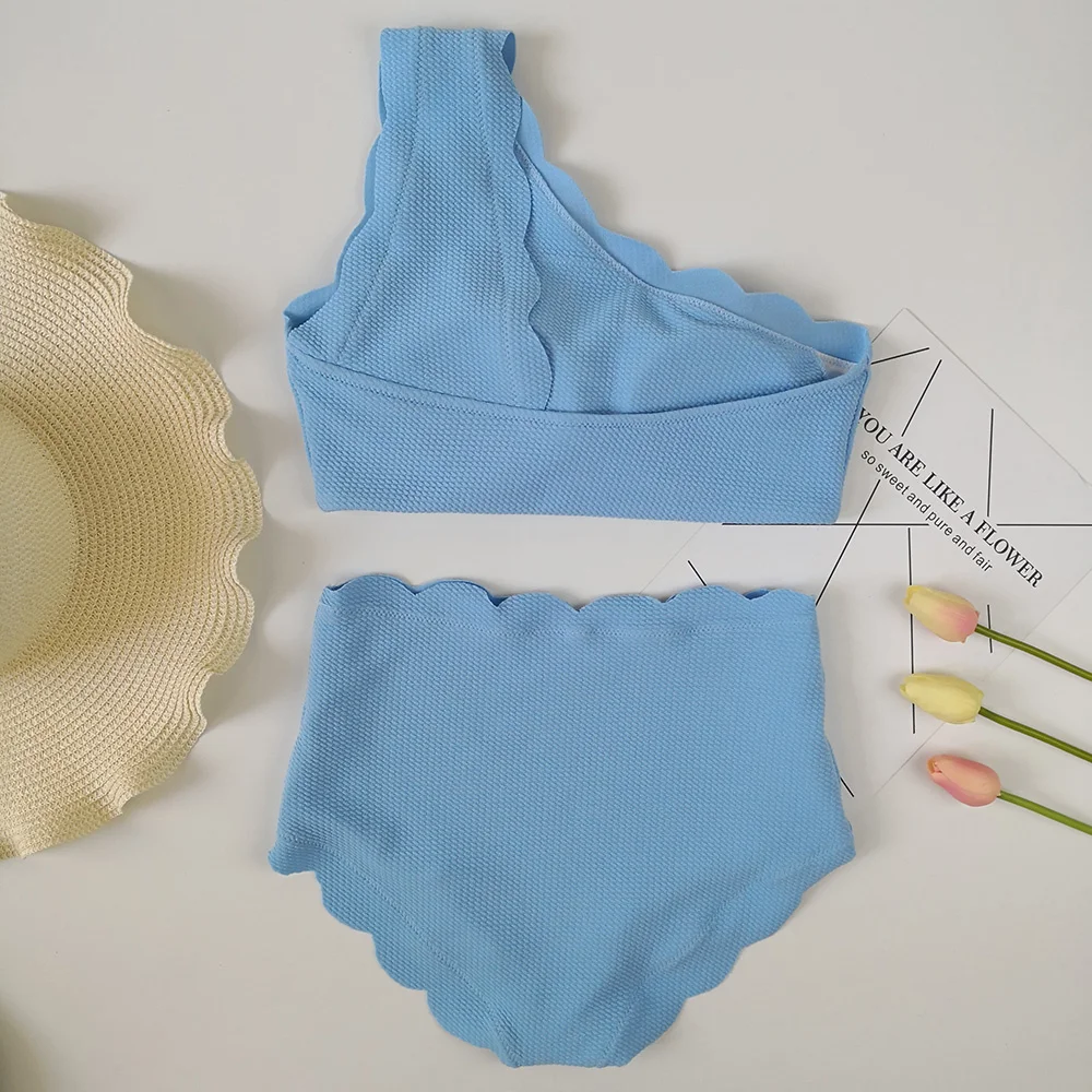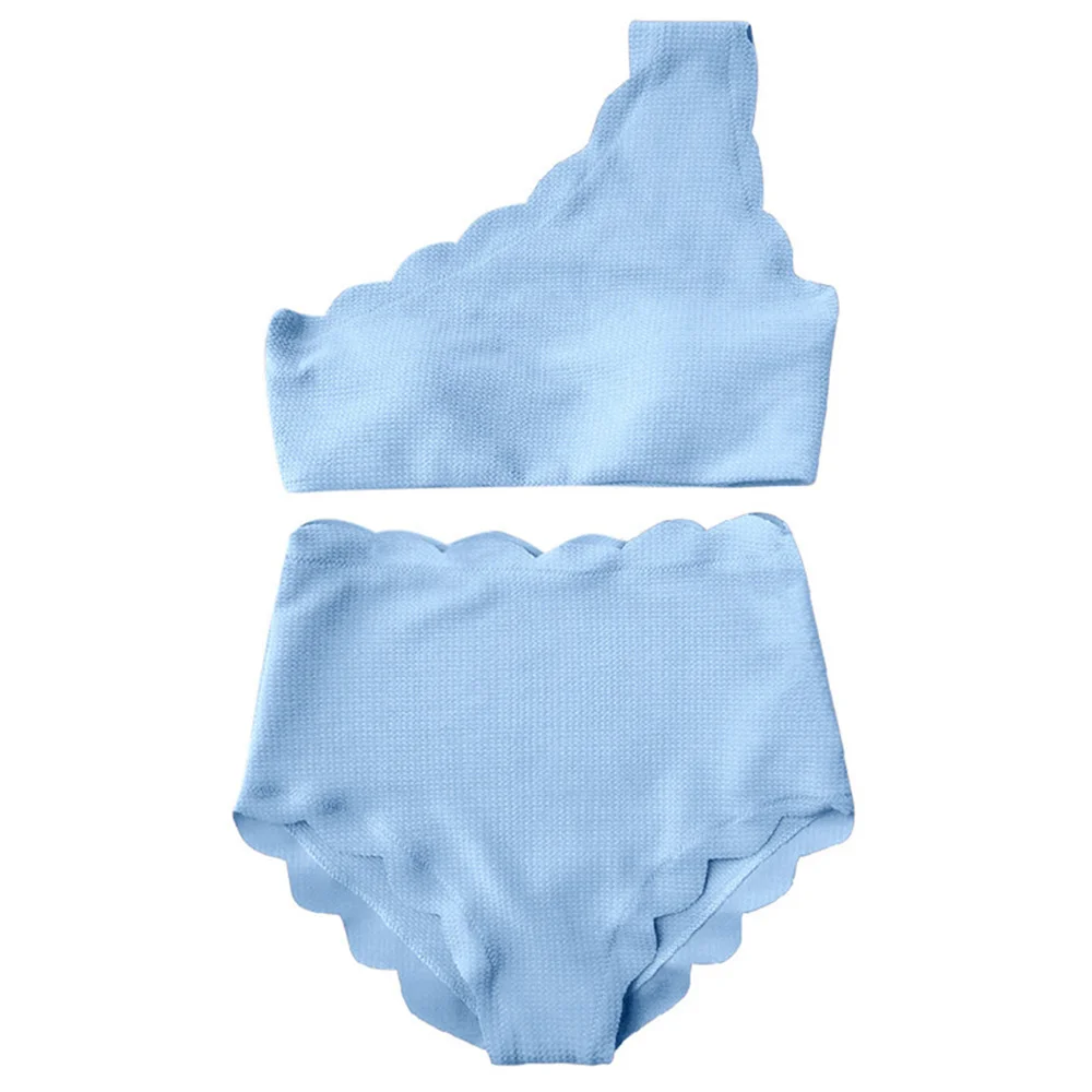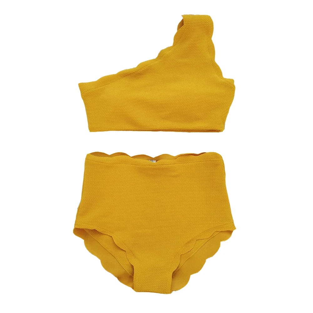 Женский однотонный купальник, женский купальный костюм, комплект бикини с фестонами и высокой талией, бикини из двух предметов, танкини