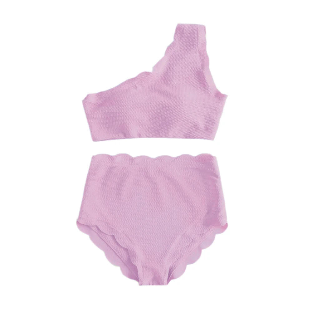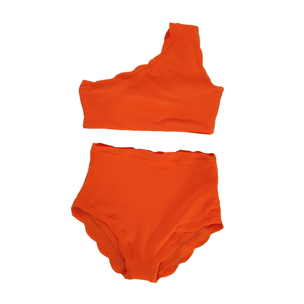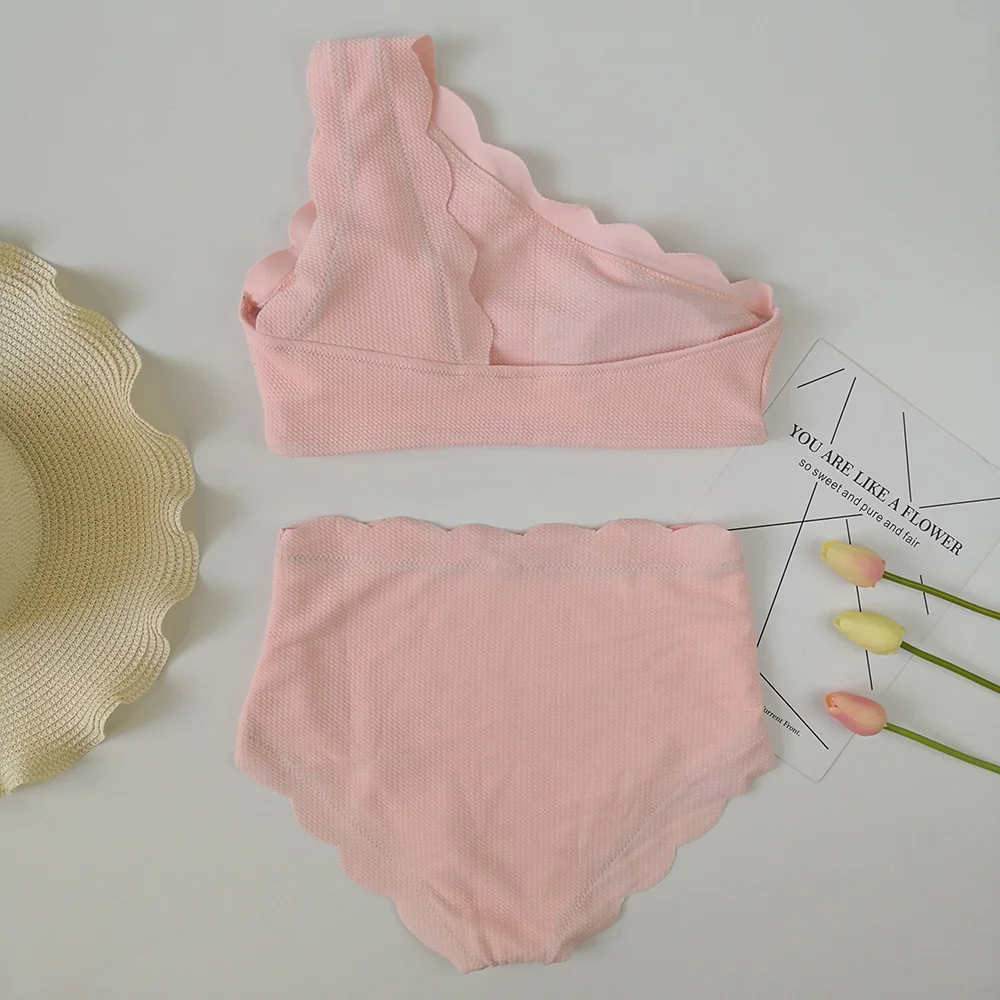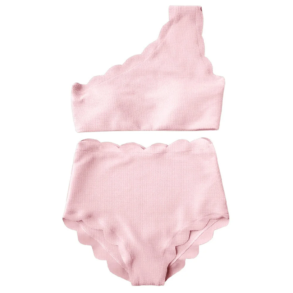 Женский однотонный купальник, женский купальный костюм, комплект бикини с фестонами и высокой талией, бикини из двух предметов, танкини