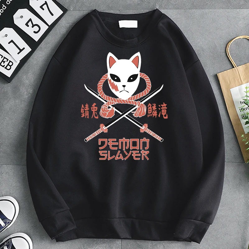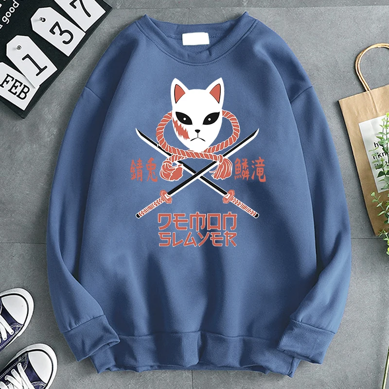 Мужская Флисовая Толстовка Demon Slayer, с винтажным принтом, Осень-зима, новинка свободная уличная одежда