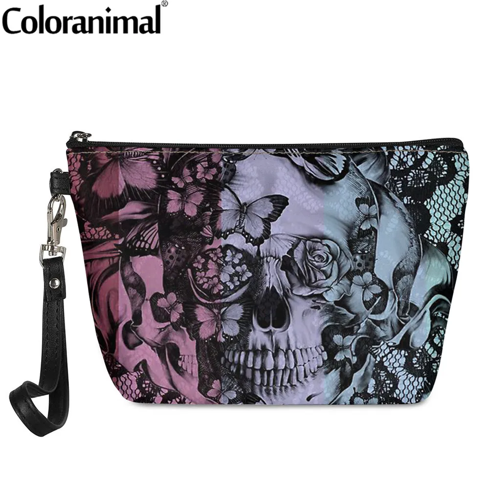 Coloranimal День мертвых с цветочным принтом череп с кружевным рисунком Femme Make up Чехол Мини косметический чехол Для женщин Функция набор туалетных принадлежностей