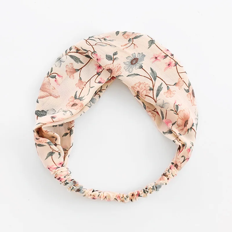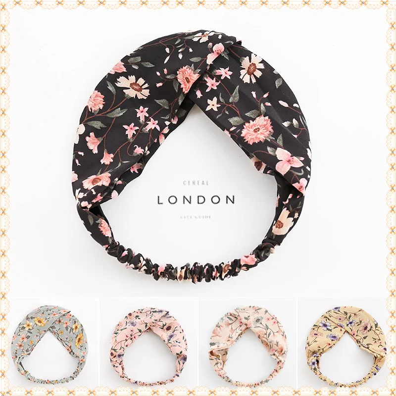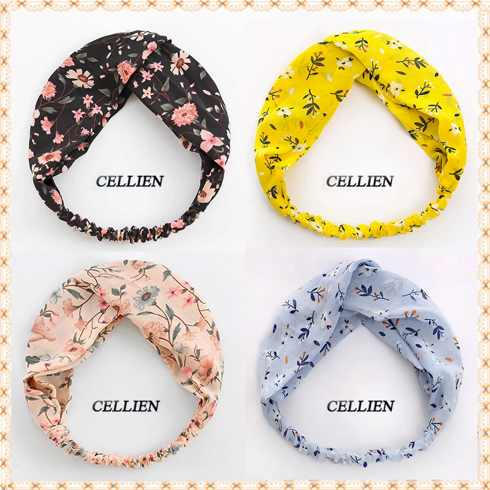 Повязка на голову женская шифоновая, с цветочным принтом, FD727