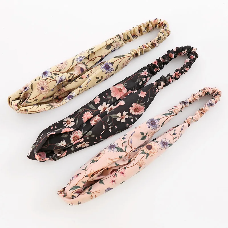 Женские повязки для волос с цветочным принтом, шифоновые однотонные...