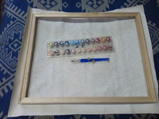 Упаковка включает:1 * Холст, 3 * кисть, 1 * Инструкция, 1 * краски, 2 * крючок без следов, 2 винта