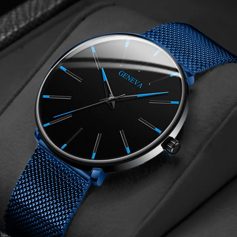 Мужские спортивные ультра-тонкие часы из нержавеющей стали, простые мужские деловые часы с сетчатым ремешком, кварцевые наручные часы, Relogio Masculino