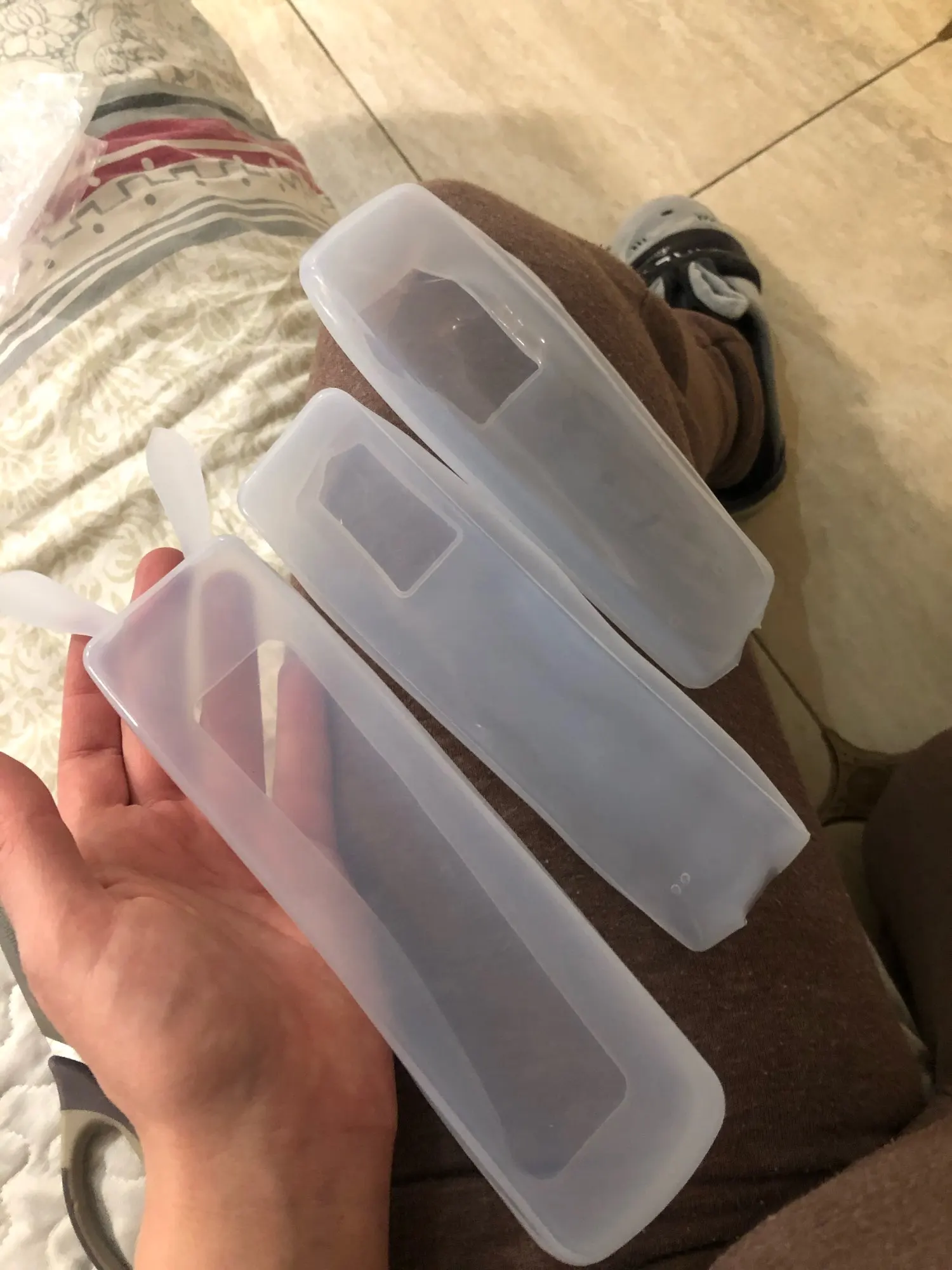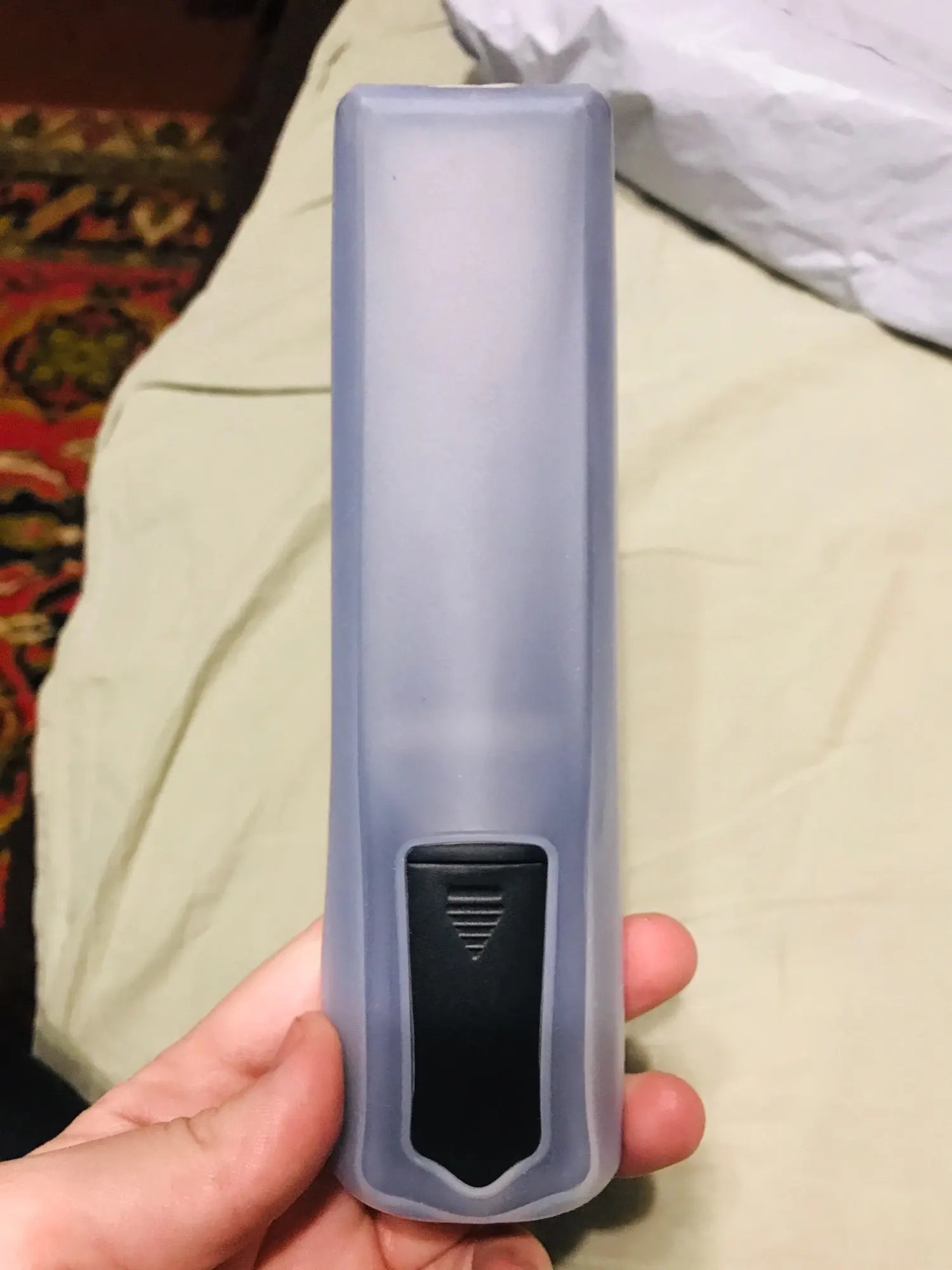 Он идеально подходит, очень удобен и не мешает сигналу управления телевизором. Это здорово, чтобы держать устройства чистыми и дезинфицированными. Спасибо, спасибо.