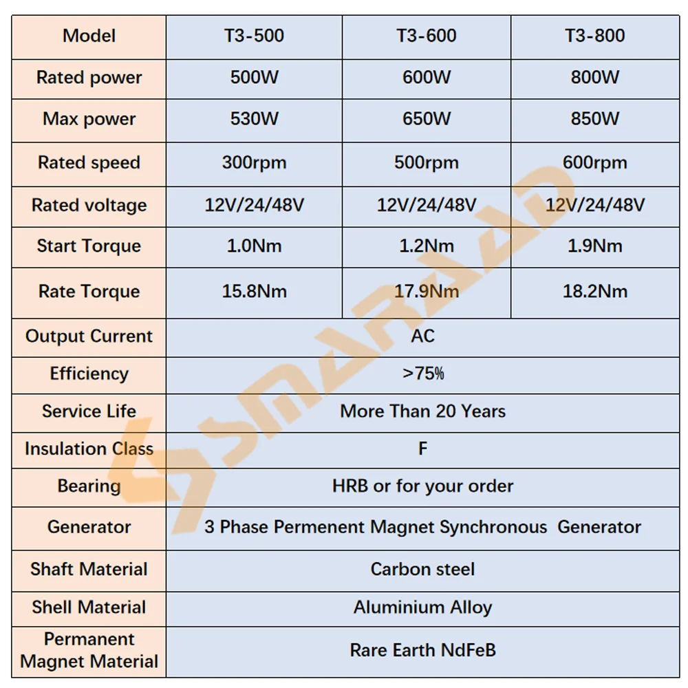 Генератор переменного тока на постоянных магнитах, 800 Вт, 12 В, 24 В, 48 В, 300 обмин, с полым ротором, для вертикальной ветряной турбины