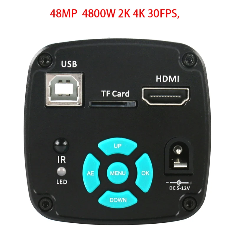 Спецификация: Модель: камера с двумя выходами HDMI USB2.0 Датчик изображения: 48 мегапиксельный датчик Panasonic Частота кадров: 60f/S @ HDMI выход Размер фильма: 4K(30 кадров в секунду) 2K(30 кадров в секунду) 1080P(60 кадров в секунду) 720P(60 кадров в секунду) (Примечание: Если вам нужно записать видео 4K или 2K, вам нужно использовать tf-карту SDHC class10.) Корпус: все металлические Поддержка: c-крепление объектива Цифровое увеличение: 5 раз цифровой зум Баланс белого: Авто/руководство Перекрестный Курсор: Поддержка разных цветов, размер регулируется Интерфейс tf-карты: макс. 32G Формат видео: MOV Интерфейс HDMI: выход HDMI/UDB Изображение: 48 м 8000X6000/38 м 7168X5376/26 м 5888X4416/20 м 5120X3840/16 м 4608X3456 Язык: китайский/английский Зеркальное отображение: Поддержка Частота: 50 Гц/60 Гц Монитор: 16:9/16:10/4:3 Линия сетки: 15 горизонтальных линий, 15 вертикальных линий, линия центрального масштаба, пользовательские цвета, размер Источник питания: 5-12 в 1 А 10X-130X C-MOUNT Объектив: Рабочее расстояние: 60 мм-300 мм Коэффициент масштабирования: 1 : 11 Увеличение мощности на 0,1-1.3X (около 10 - 130X на дисплее) Поле зрения Макс несколько: 8 мм * 4,5 мм Поле обзора мин несколько: 40 мм * 33 мм Размер: 30 мм (диаметр) * 84 мм (длина) Вес: 180 г 144 яркие белые светодиодный лампы Изменяемое направление освещения Управление переменной интенсивностью Интенсивное и сфокусированное освещение без тени 100000 часов жизни Входная мощность: 100-240 В, 50-60 Гц, автоматическое переключение Внутренний диаметр кольцевого светильник: 1,0 " (27 мм) Общий внешний диаметр: 1,77 " (45 мм) Рабочее расстояние: 27 мм-45 мм Посылка включает: 1 x камера микроскопа 1 x источник питания (AU/EU) 1 х USB кабель 1 х HDMI кабель 1 х диск программного обеспечения 1 пульт дистанционного управления 1 x подставка 1x130x C-MOUNT объектив 1x144 светодиодный кольцевой светильник