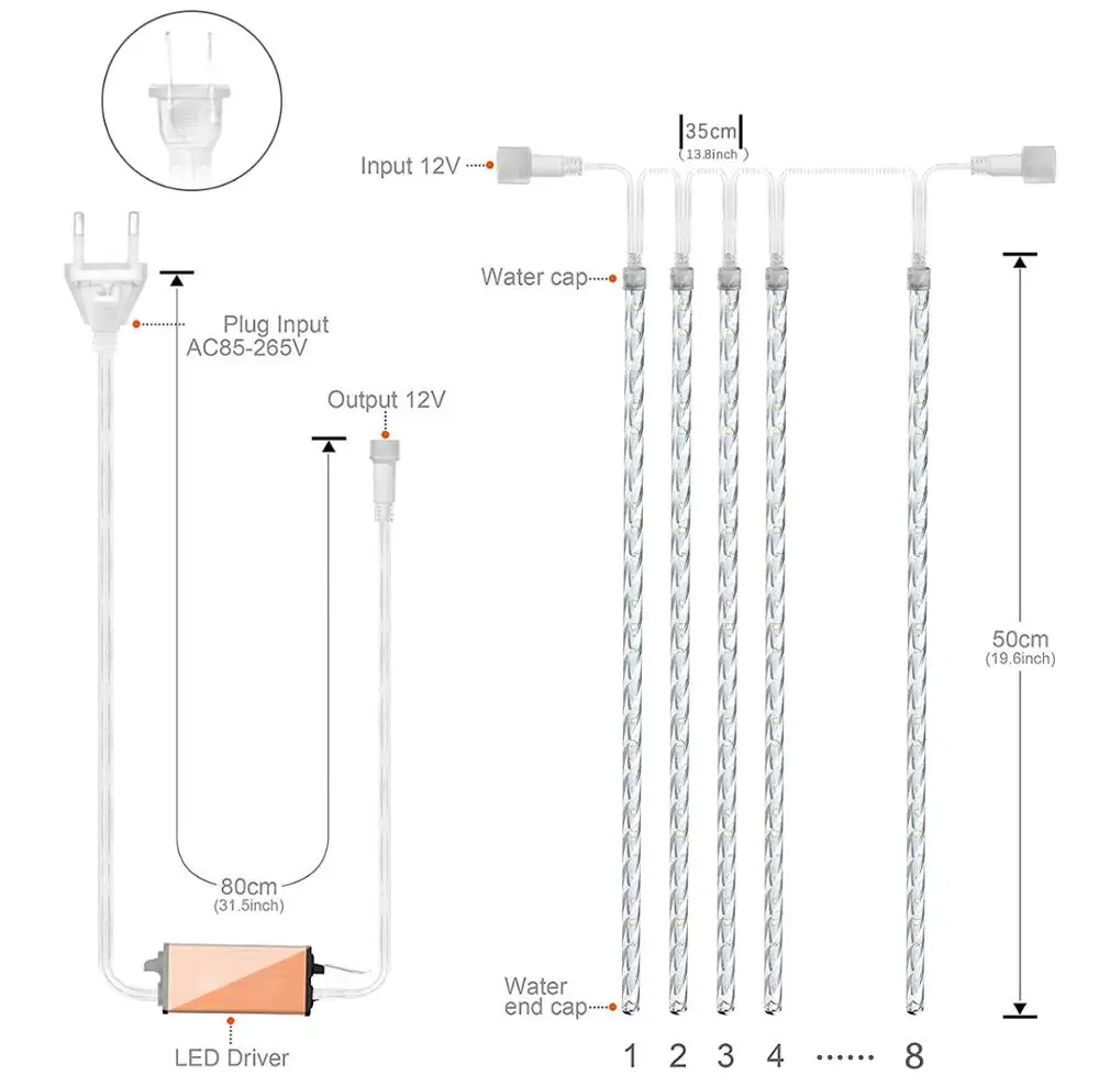 Для достижения эффекта метеоров используется двухсторонняя лампа SMD2835 с высокой яркостью. Водонепроницаемый интерфейс, безопасный и простой в использовании. Водонепроницаемая штепсельная вилка США/ЕС, более безопасная и долговечная.