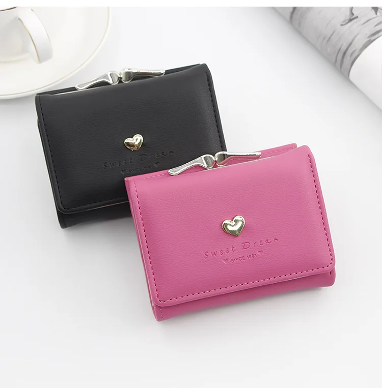 Маленький женский кошелек с любящим сердцем, короткий женский кошелек, держатель для карт, модный Женский мини-кошелек для монет для девушек, клатч