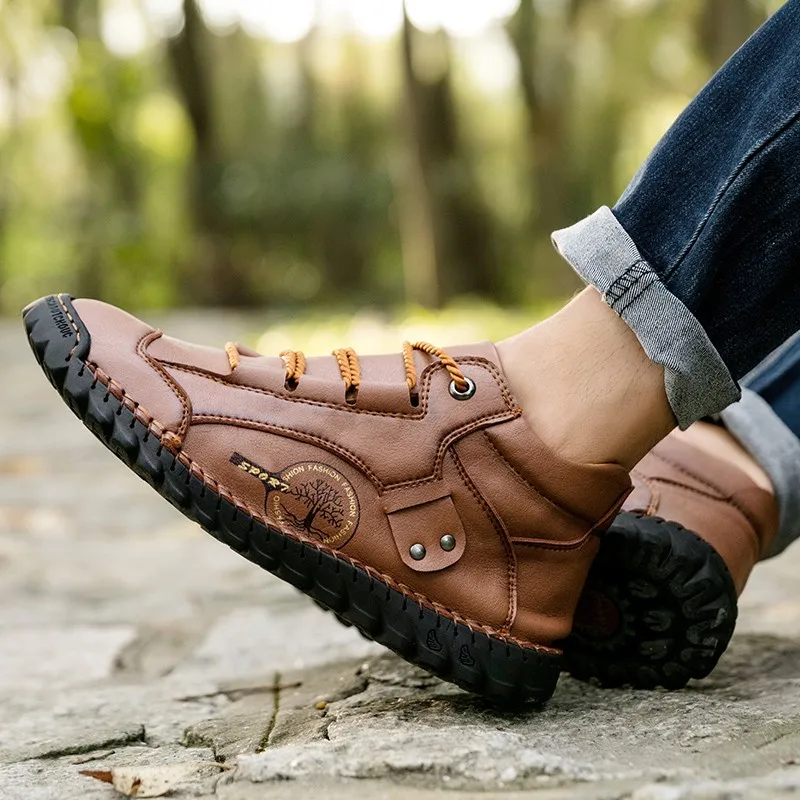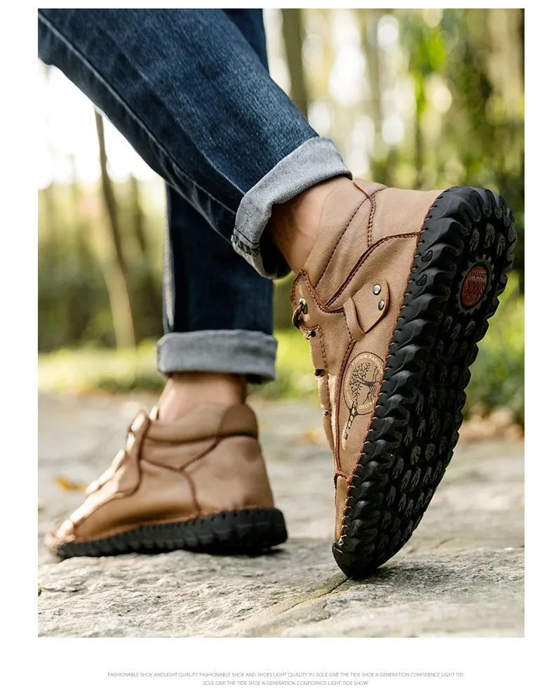 Ботинки мужские кожаные, до щиколотки, зимние, для езды на мотоцикле