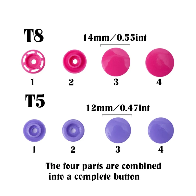 Круглые пластиковые кнопки-застежки T5, 12 мм, 20-150 комплектов