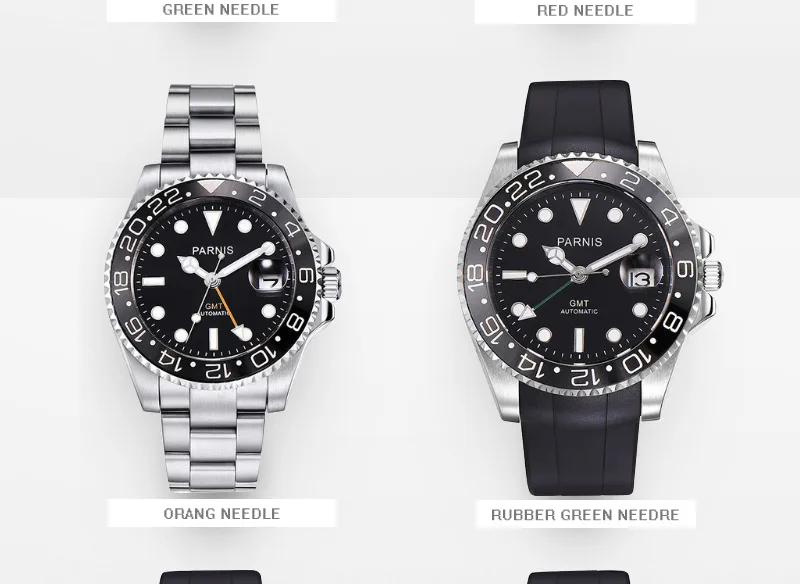 Parnis 40mm часы мужские спортивные механические часы GMT черный, к...