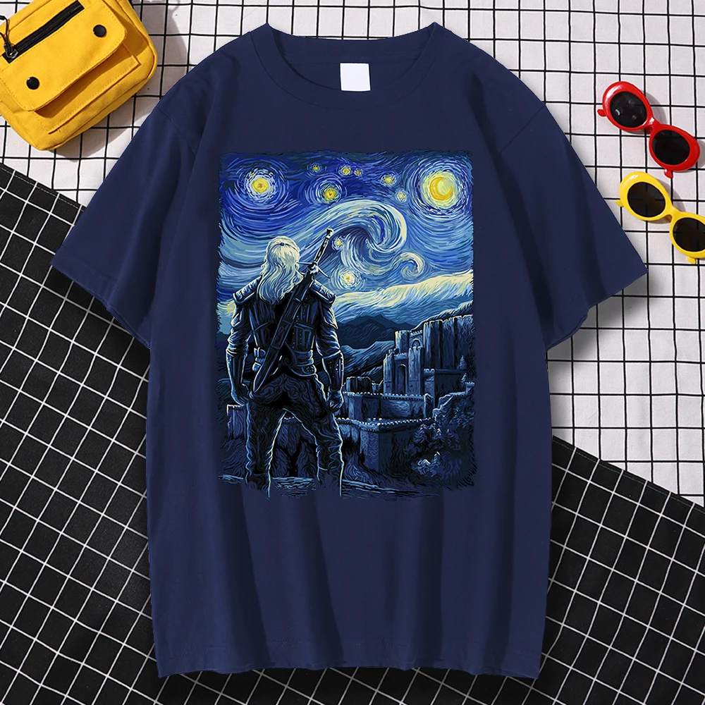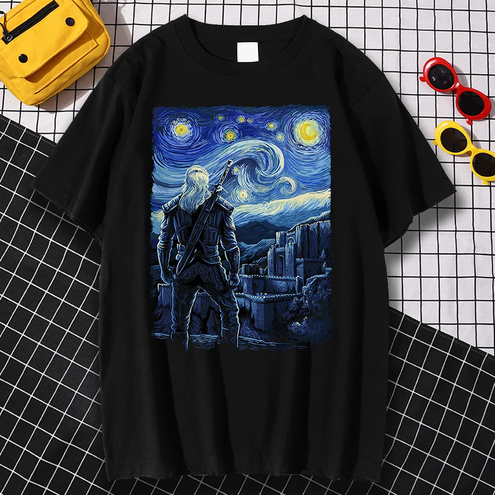 Мужская футболка с принтом Starry Kaer Morhen, свободная футболка для пар, винтажная брендовая одежда для мужчин, Новинка лета 2022