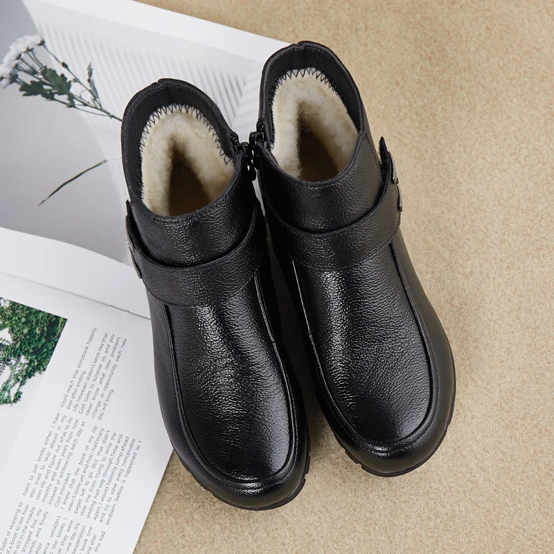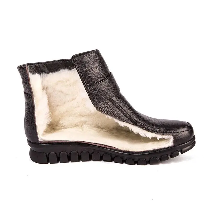 OUKAHUIзимние винтажные теплые женские ботильоны из натуральной кож...
