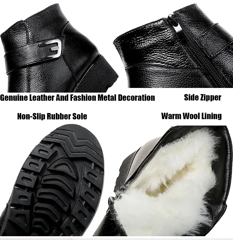Женские ботинки из натуральной кожи OUKAHUI, черные теплые ботинки ...