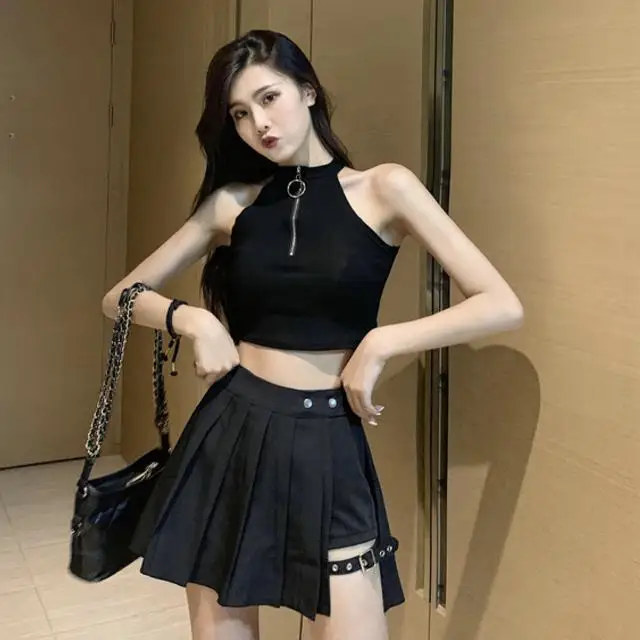 Женская юбка, готическая Черная плиссированная юбка с высокой талией, юбка с шортами в стиле Харадзюку, новая летняя юбка в клетку