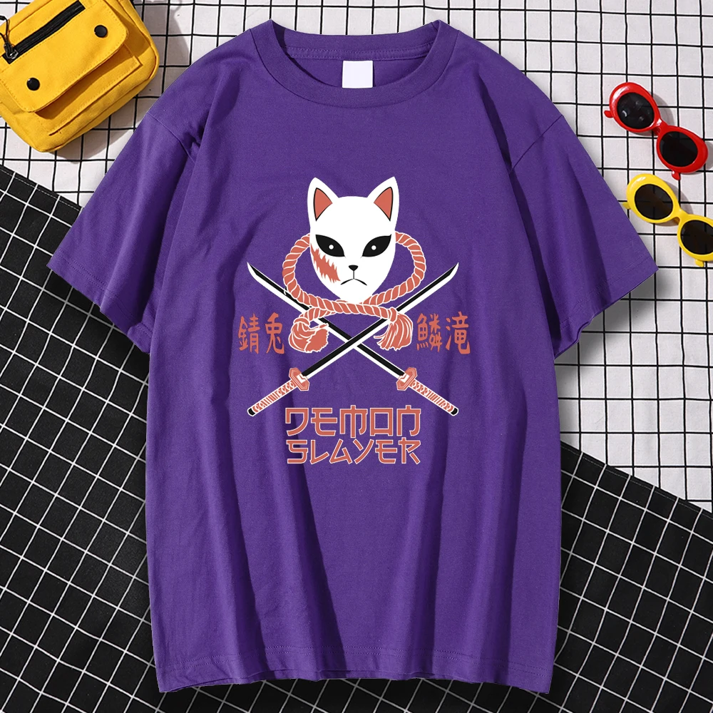 Футболка Demon Slayer мужская оверсайз с коротким рукавом, топ свободного покроя в стиле аниме Мужская футболка с рисунком, с круглым вырезом, в стиле Харадзюку, лето