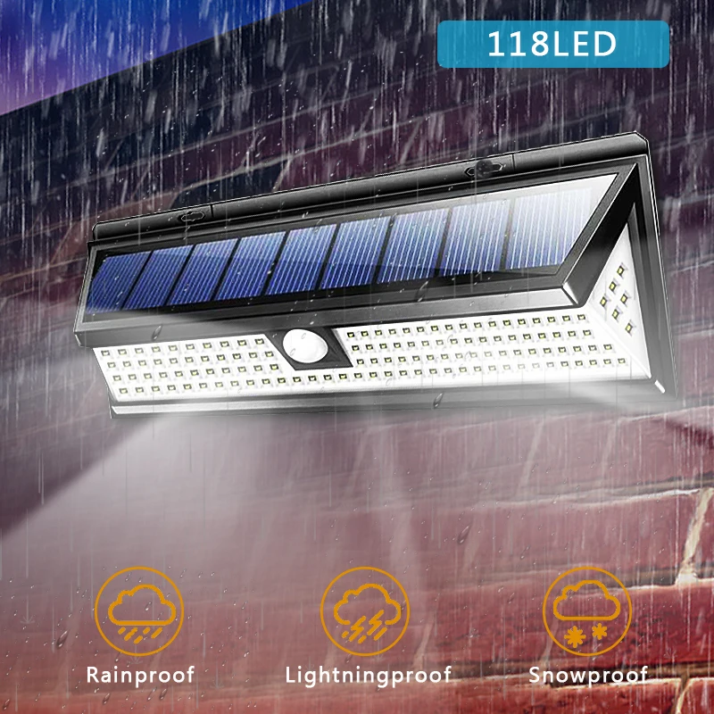 Светодиодный садовый датчик движения Солнечный настенный светильник водонепроницаемый для двора 118 светодиодный настенный энергосберегающий настенный светильник на солнечной батарее 3-сторонний свет