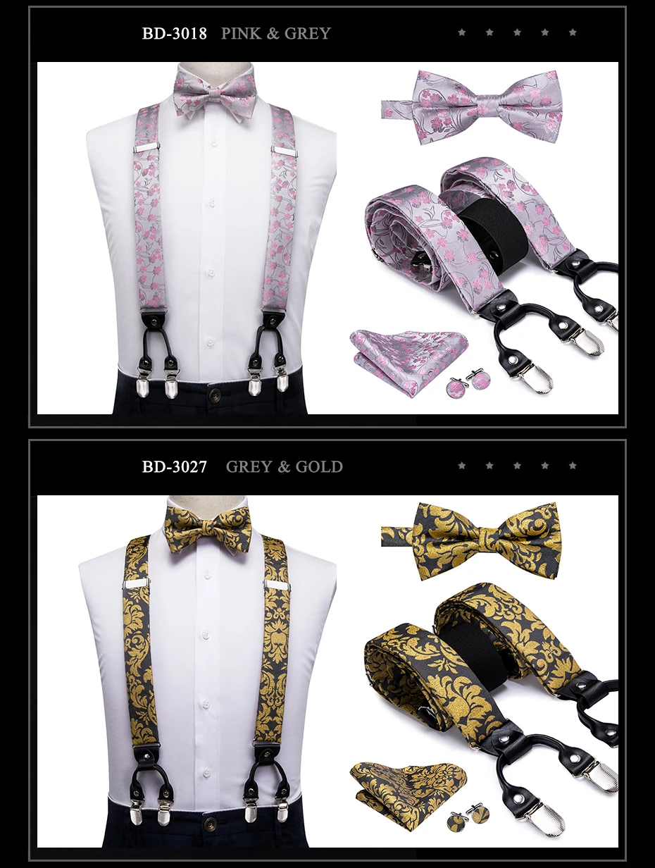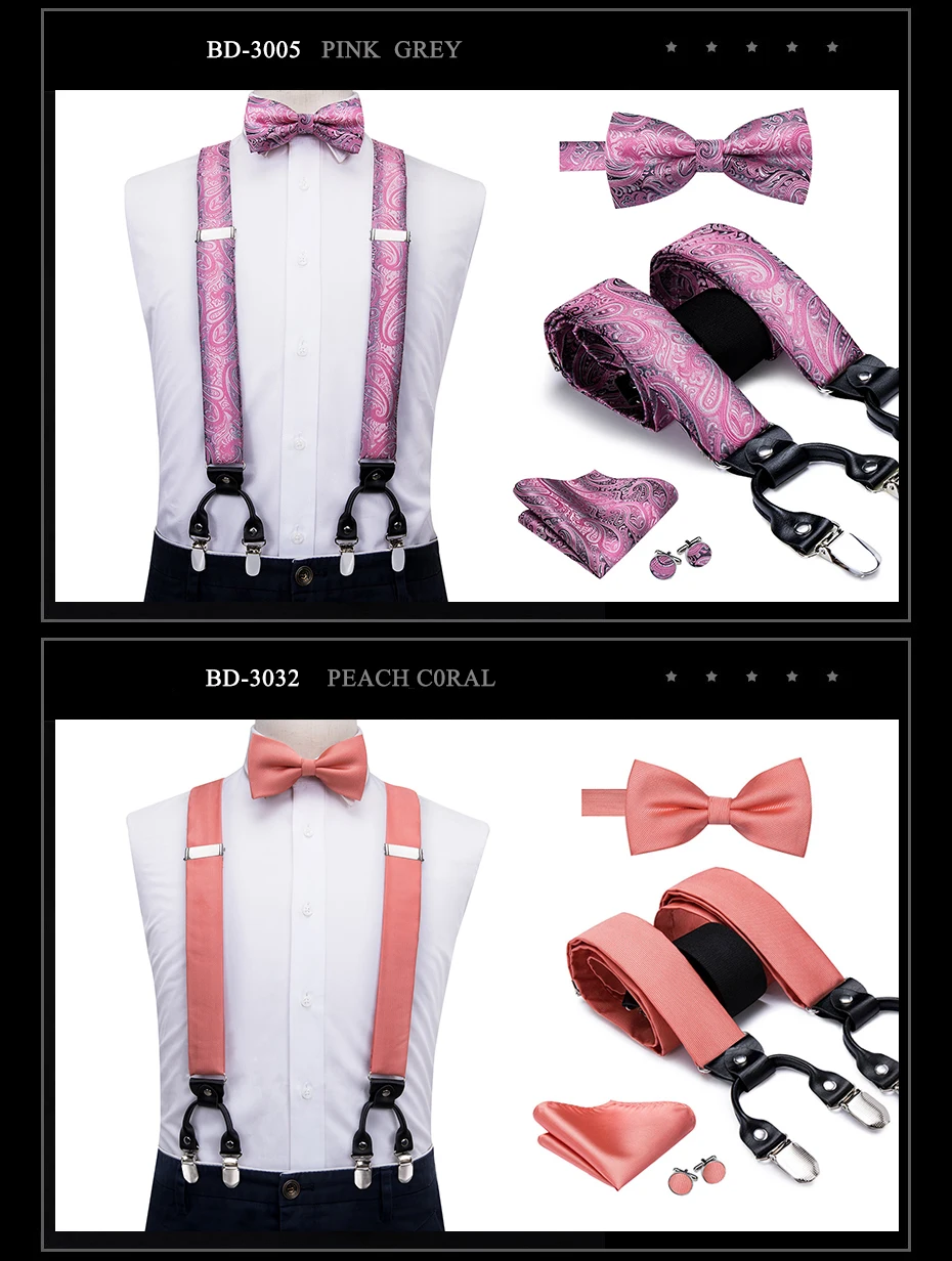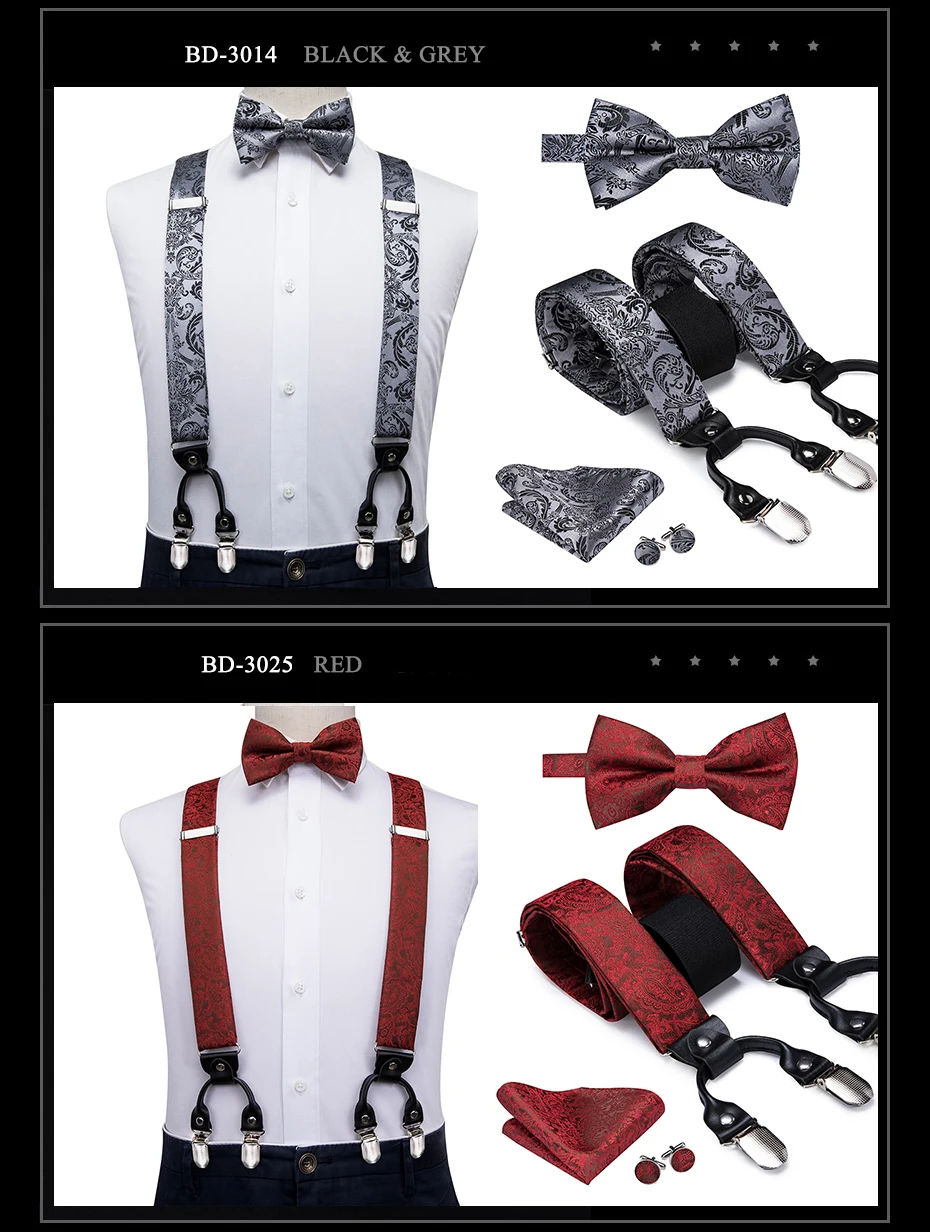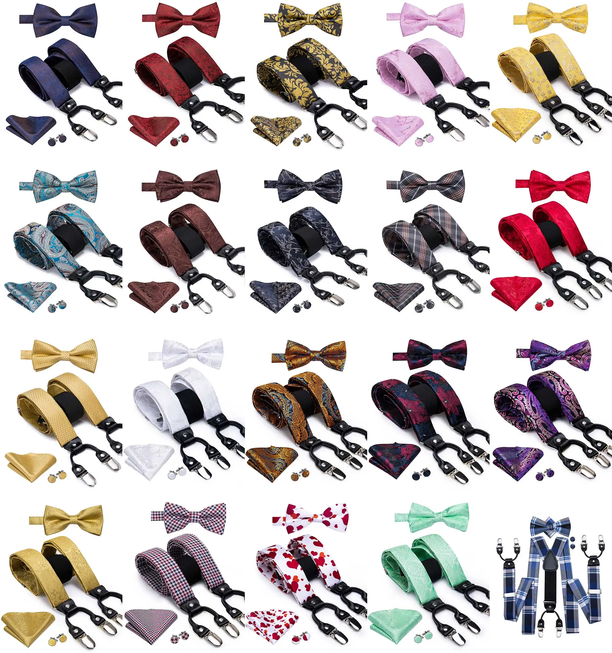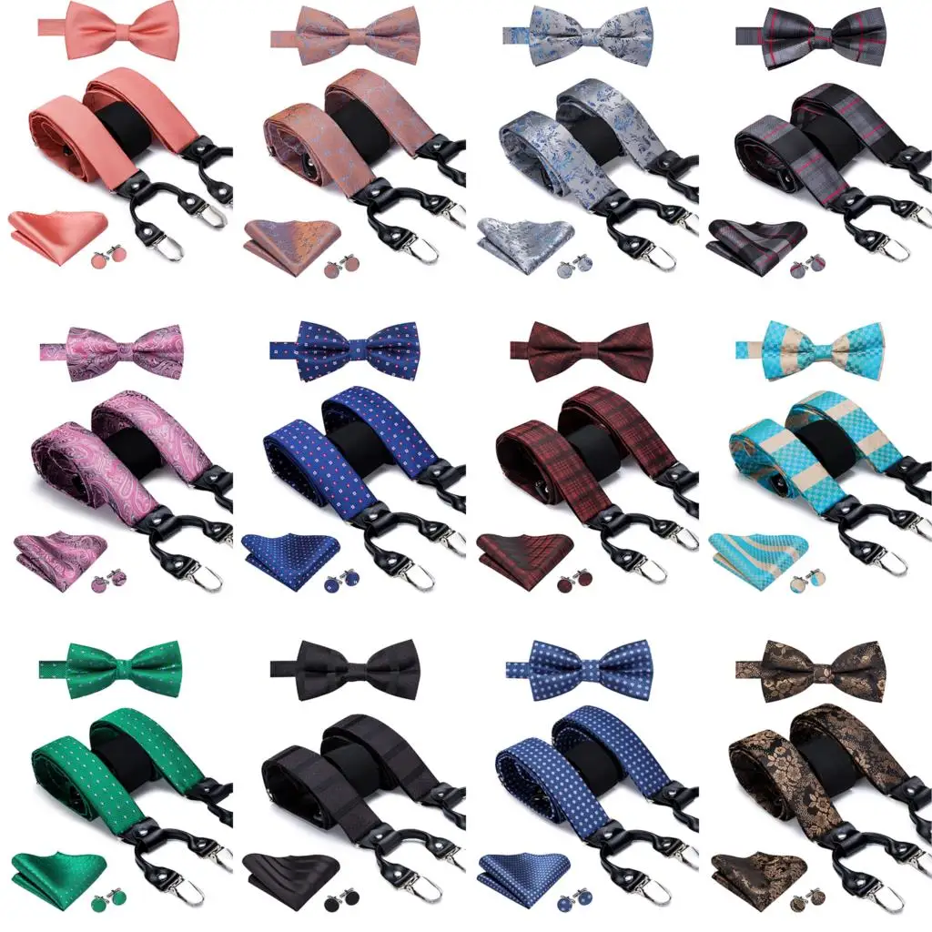 Подтяжки Hi-Tie мужские, из 100% шелка, 45 цветов, 6 зажимов подтяжек