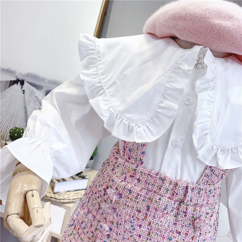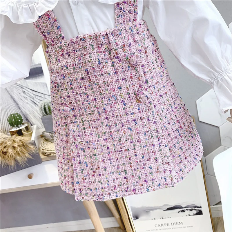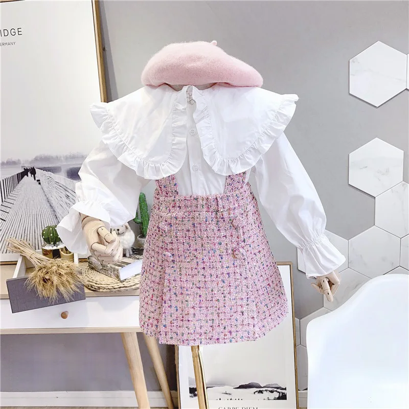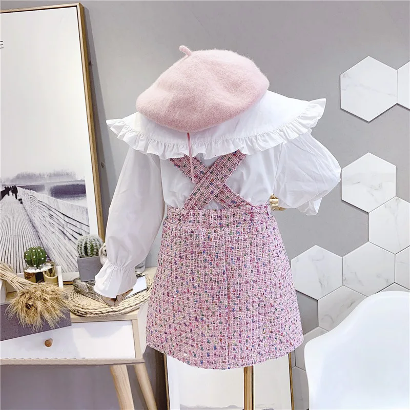 Осеннее платье для девочек, детская одежда, Зимние Детские платья для девочек Вечерние вечернее платье, рубашка + шерстяное платье на бретелях, платье для маленьких девочек