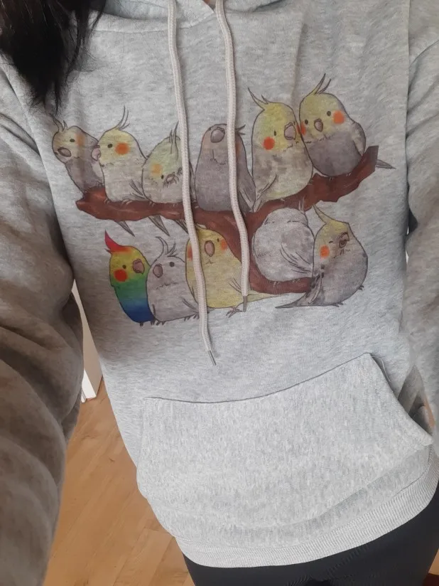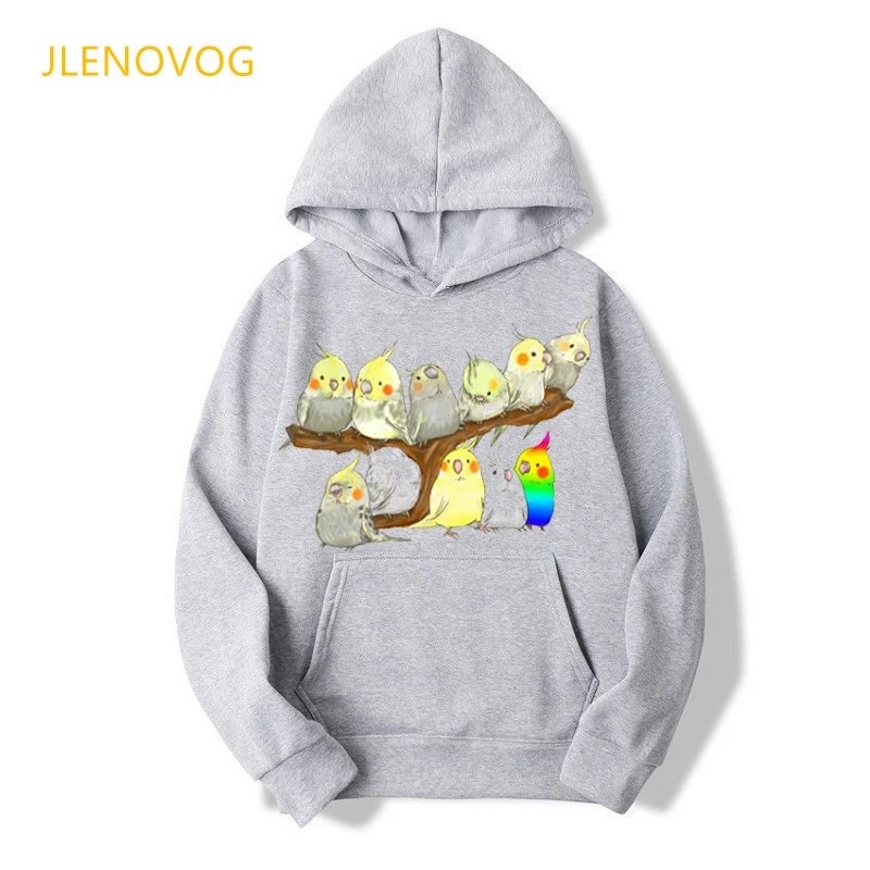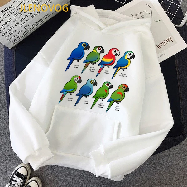 Толстовка женская розовая с принтом в виде радужных птиц, попугая, 2020