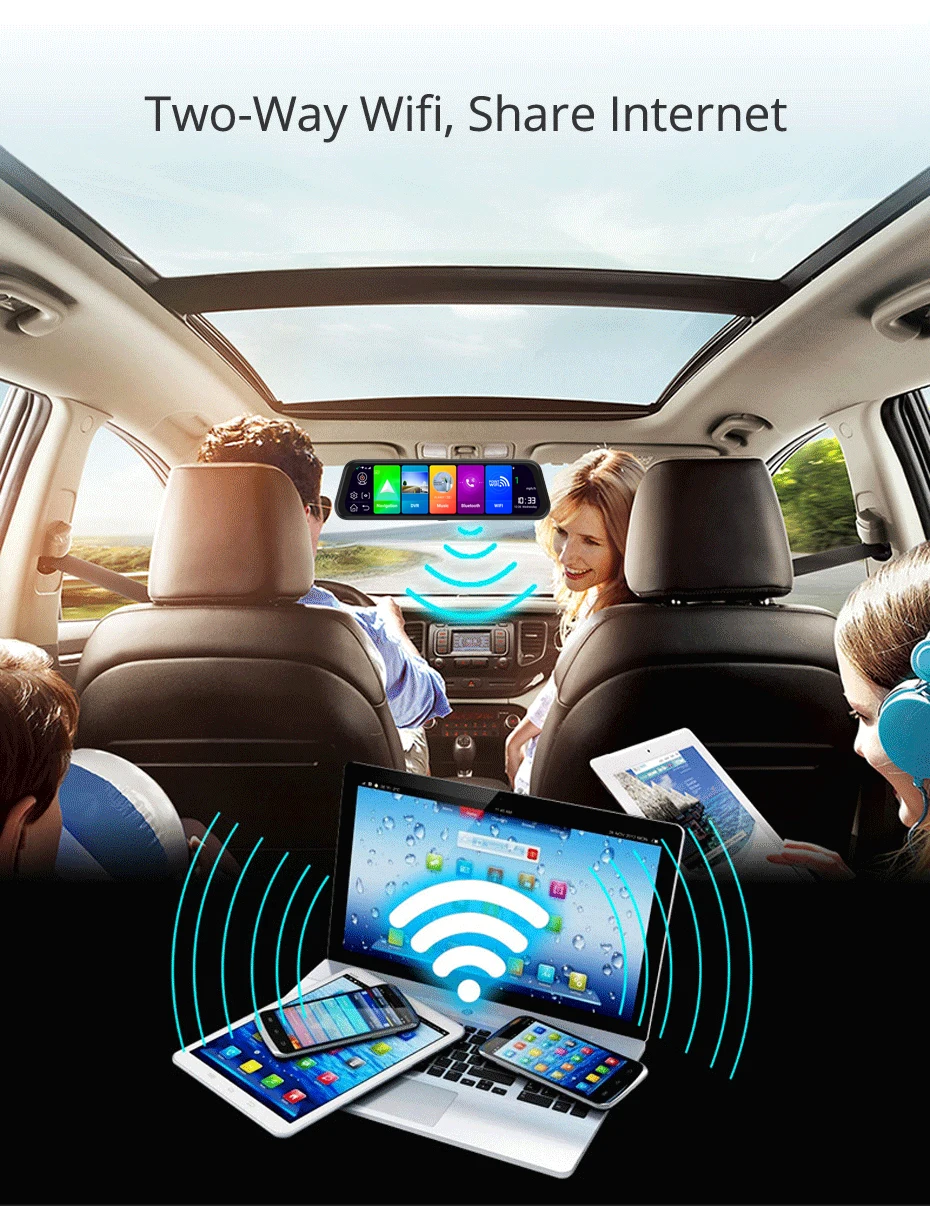 Встроенный Wi-Fi позволяет оставаться на связи на ходу и быстро просматривать веб-сайты. GPS карта, фильмы, музыка и приложения могут быть предварительно загружены, когда доступен бесплатный WiFi. Не только Автомобильный видеорегистратор подключается к Wi-Fi, но и может быть точкой Wi-Fi для вашего другого устройства, когда Автомобильный видеорегистратор поставляется с интернетом на 2G/3G/4G sim-карты.