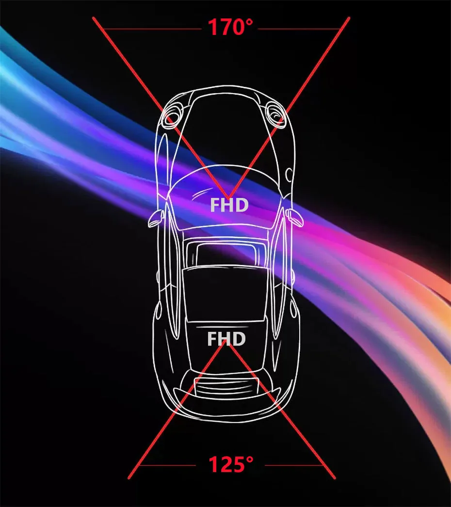 Фронтальная камера записывает видео FHD. Фронтальная и задняя камера 2 канала записываются одновременно, они могут работать в задней части земли, даже потушить экран или перемещаться по gps-навигации.