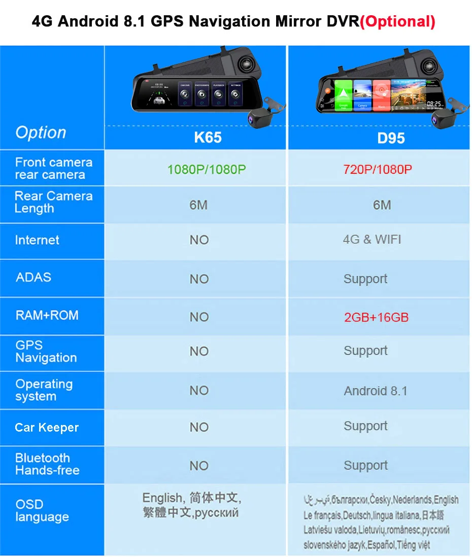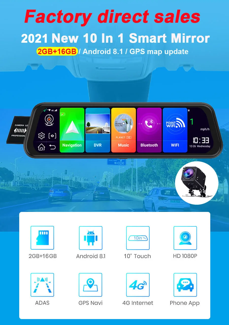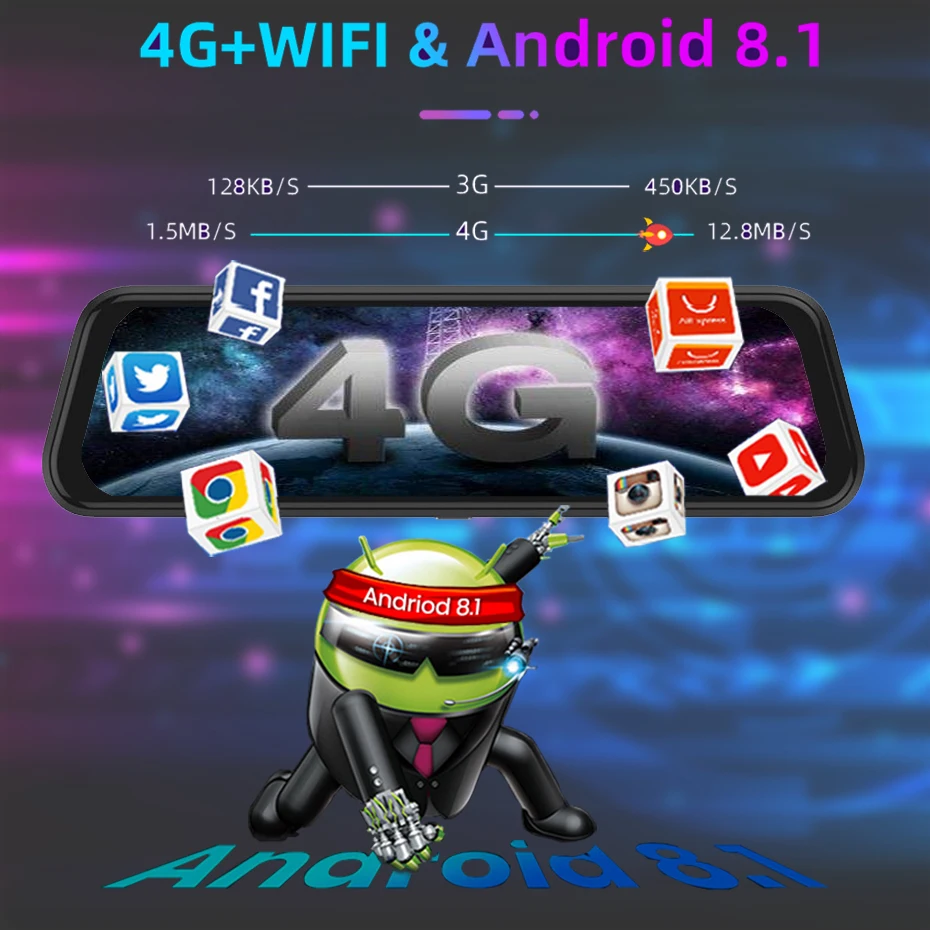 > Система Android 8,1В SL8541E quad-core 1,4 ГГц quad-core A53 высокопроизводительный процессор использует Android 8,1 интеллигентая (ый) система с высокой пропускной способностью, делает Автомобильный видеорегистратор работать быстрее, более стабильным и более стабильной. > 4G SIM и WIFIСеть серфинга в любое время и в любом месте, Поддержка s FDD: Поддержка 2100 МГц; WCDMA: Поддержка 900/2100 МГц; GSM: Поддержка 900/1800 МГц > ADAS Plus делает вождение более безопаснымУсовершенствованные системы сигнализации вождения (LDWS/ FCWS/FVMA) , это полезные системы сигнализации, чтобы сохранить безопасность вашего вождения. > Gps-навигацияАвтономная и онлайн gps-навигация доступна, например, Google Map, Waze,Sygic,Yandex , Navitel, если вы хотите. > BluetoothПоддерживает bluetooth hands-free, поддерживает bluetooth music play. > Удаленный монитор в приложении Car AssistПросмотрите обзор зеркального видеорегистратора с помощью приложения для смартфона «Car Keeper». Продолжайте заниматься серфингом в Интернете и удаленно Отслеживайте путь вождения автомобиля.