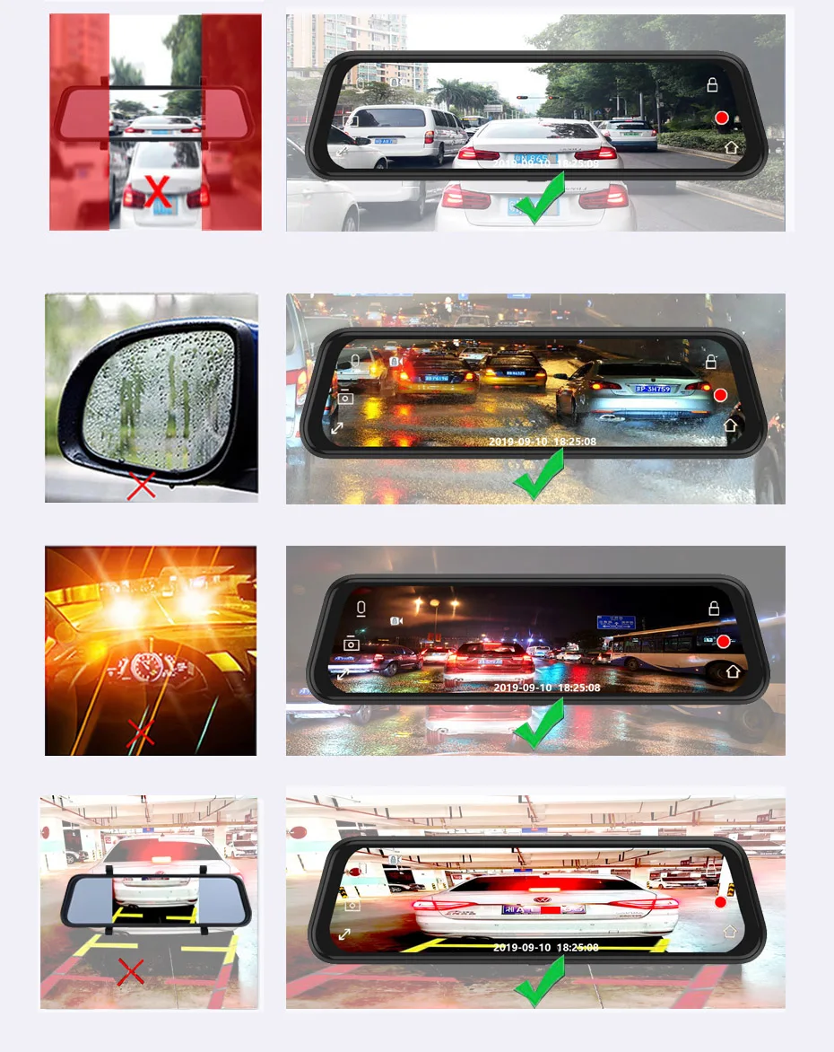 Традиционные зеркала заднего вида просто обеспечивают ограниченное поле заднего вида, большую часть времени, нам нужно повернуть голову назад, чтобы увидеть больше, когда мы паркуем. Видеорегистратор Streaming media позволяет избежать не только препятствий для подголовников или задних столбов, но и дает примерно в 3 раза больше стандартного зеркала заднего вида. Более того, видимость потрясающая даже в ночное время и в дождливые дни.
