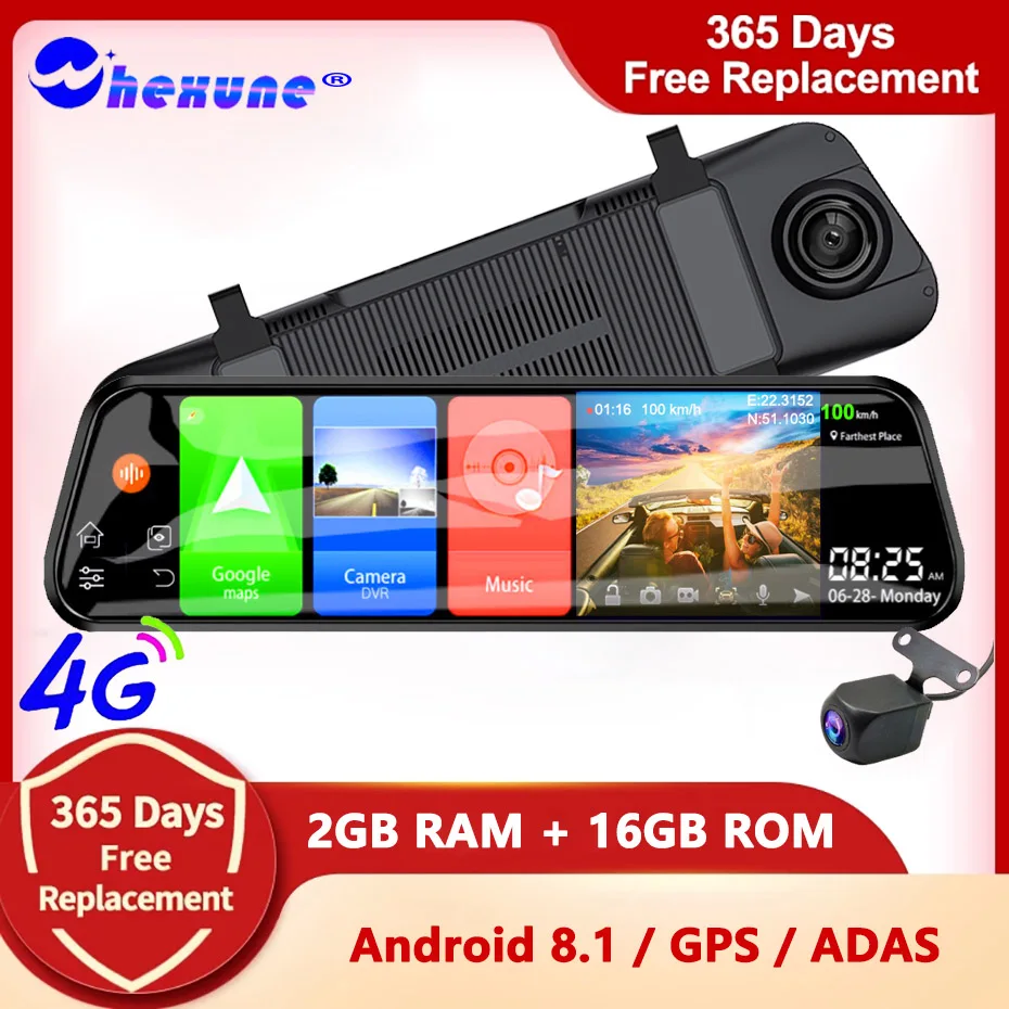 Автомобильный видеорегистратор 4G с GPS-навигацией, камера для приборной панели ADAS, зеркало заднего вида на Android, с функцией ночного видения, для авто