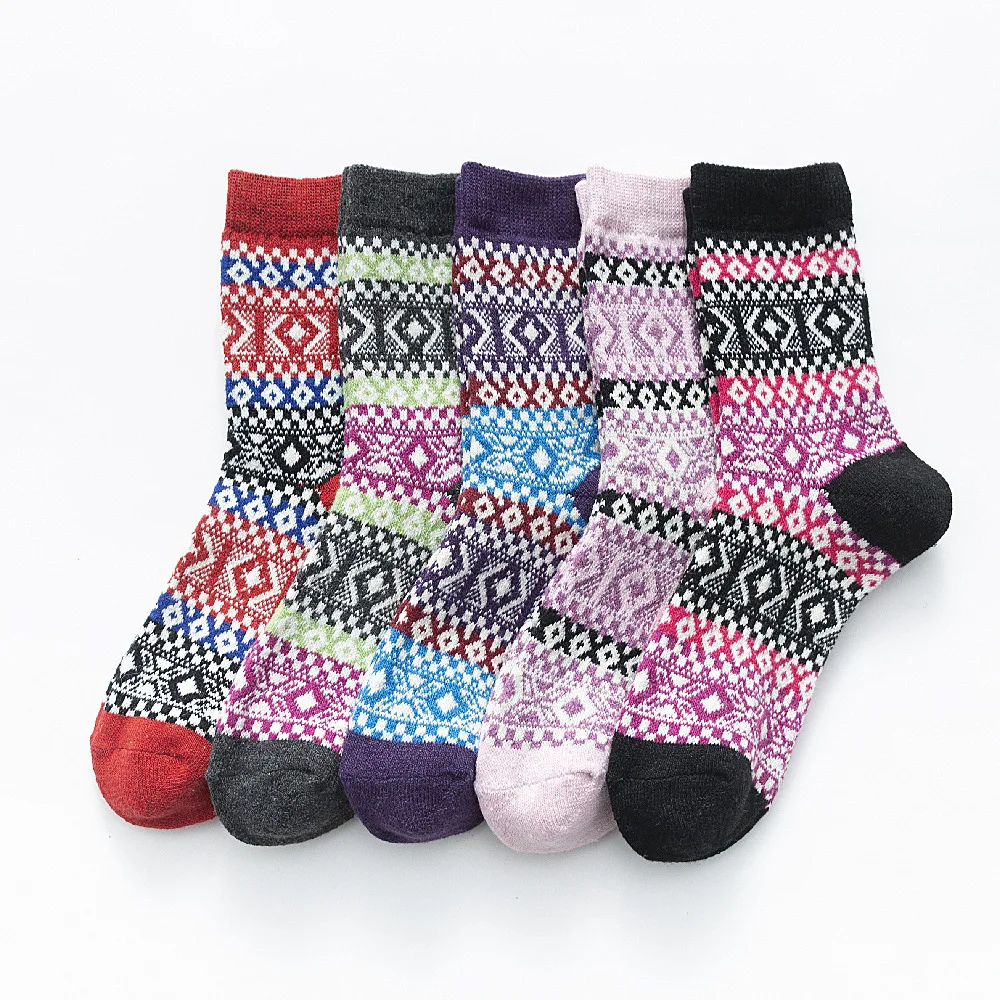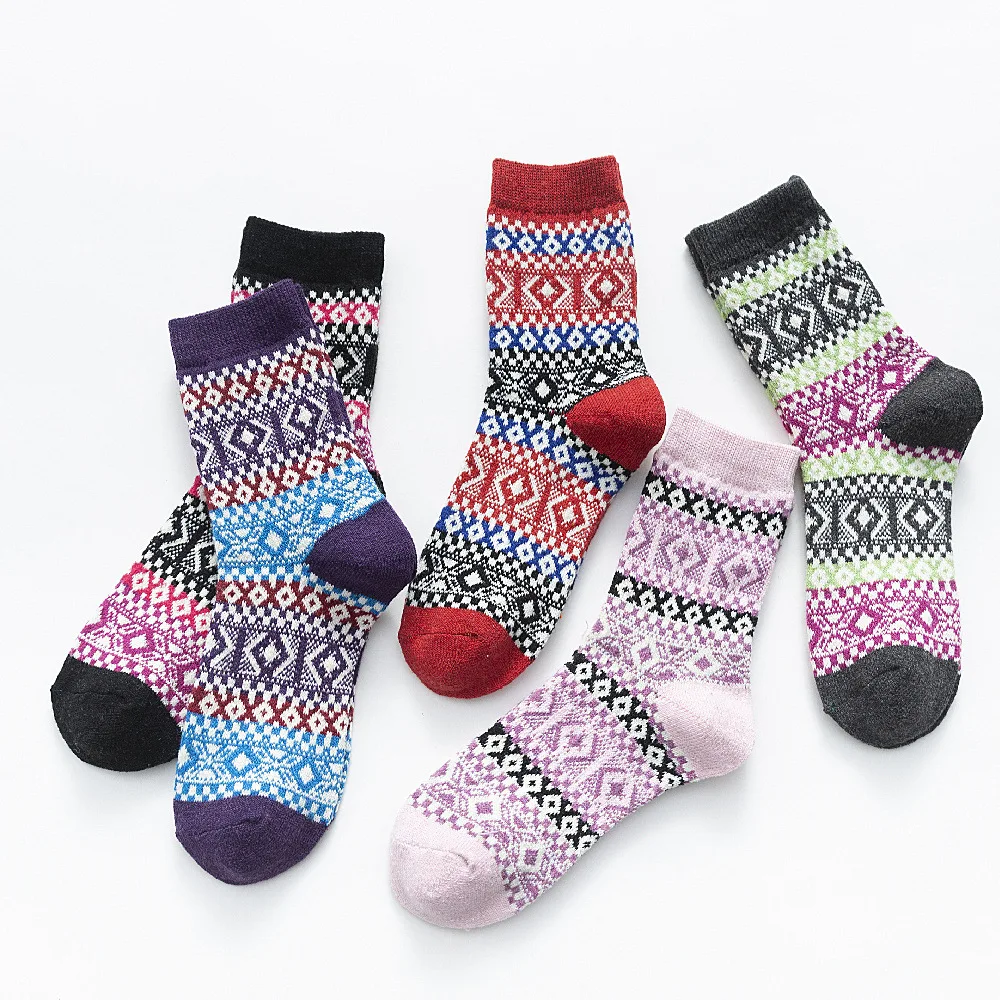 HSS Брендовые женские шерстяные носки 2020 новые зимние теплые кашемировые носки плотные Повседневные Дышащие носки с геометрическим узором для девочек 5 пар