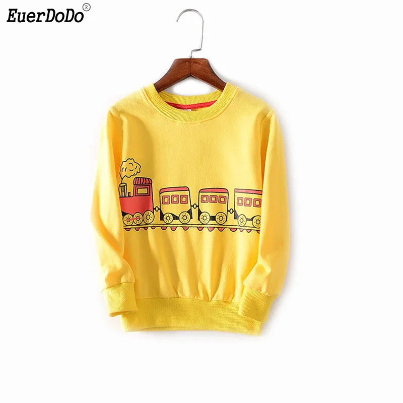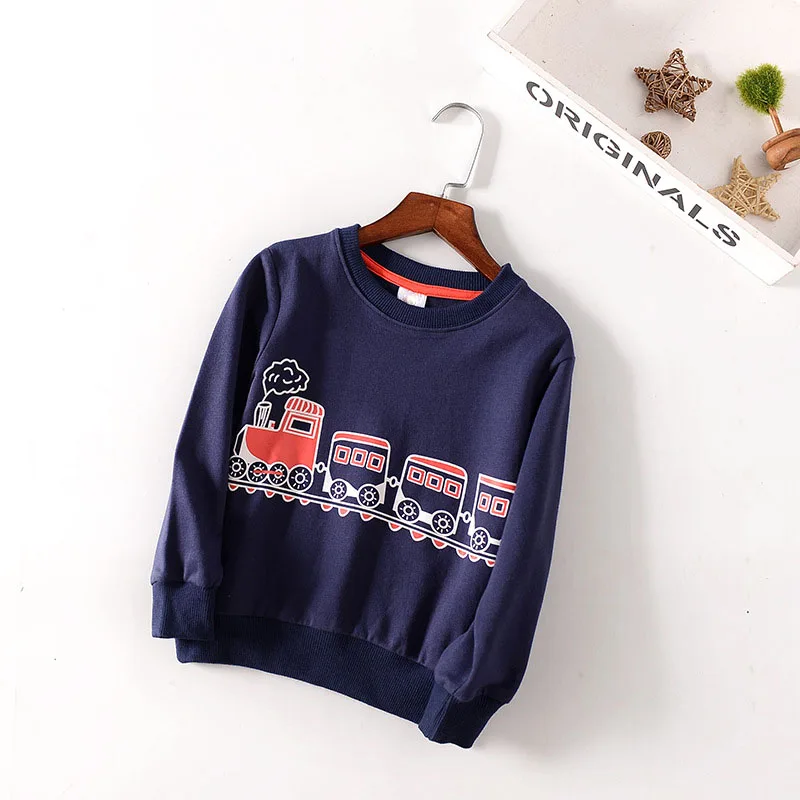 Детская футболка; Толстовки с длинными рукавами и рисунком поезда для мальчиков и девочек; Хлопковые топы; Детская толстовка; Весенне-осенняя одежда для малышей