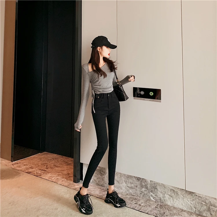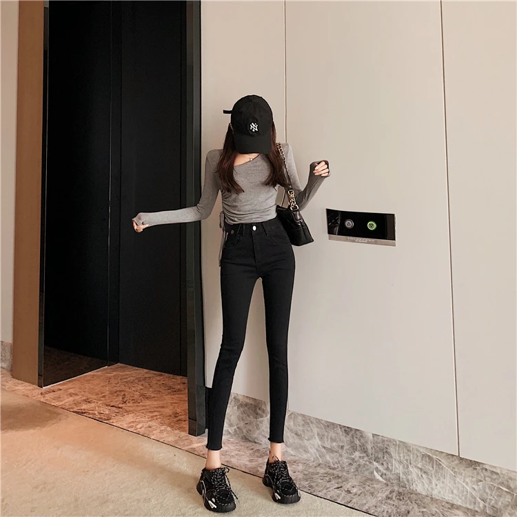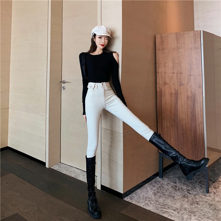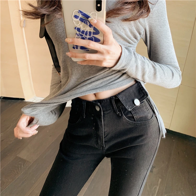 Джинсы женские, с высокой талией, эластичные, Осенние